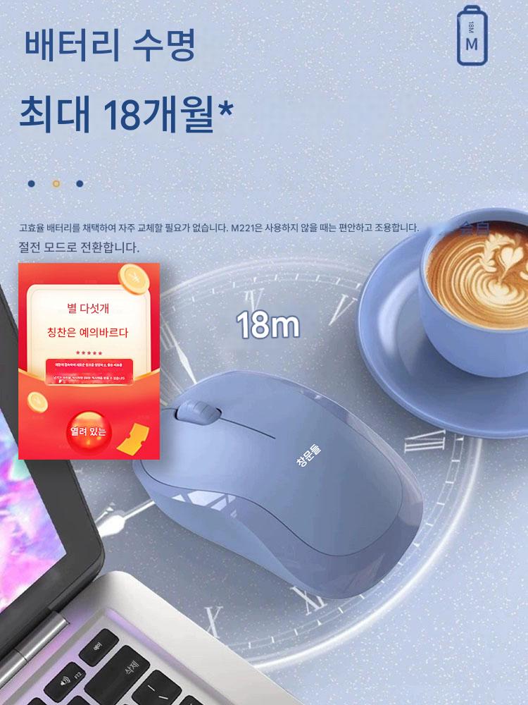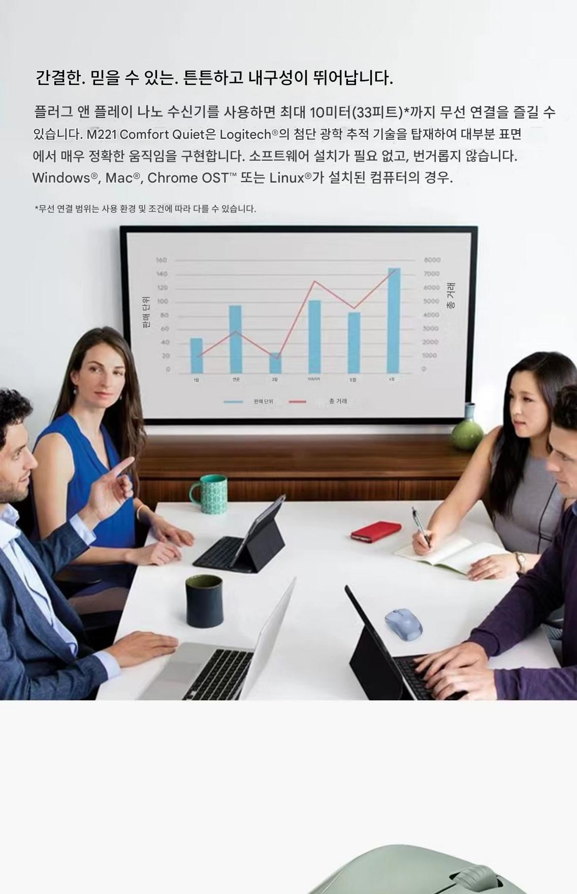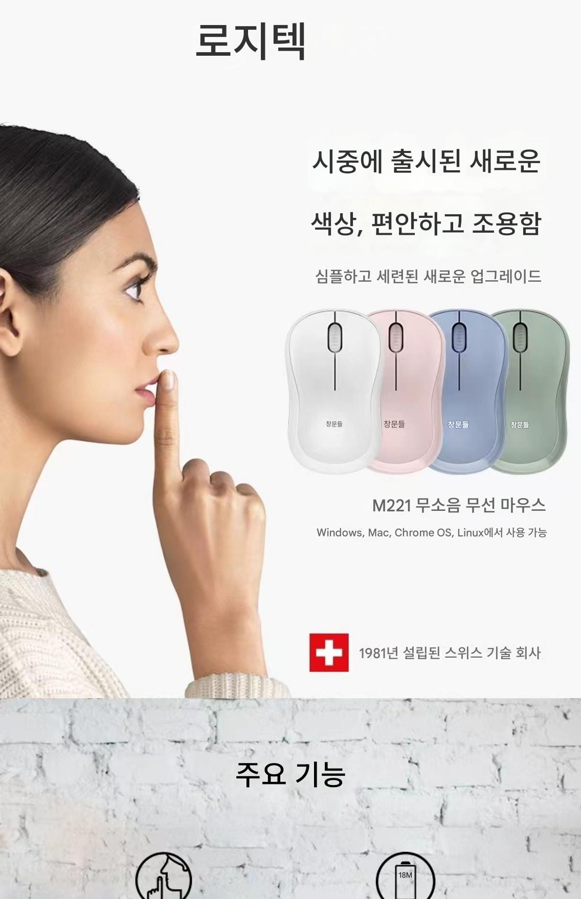 Logitech M221 무선 라이트 오피스 마우스 작고 조용하고 스타일리시하고 휴대하기 편리한 광학 무선 마우스