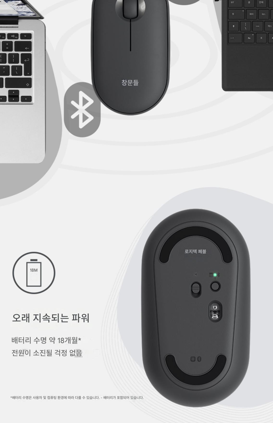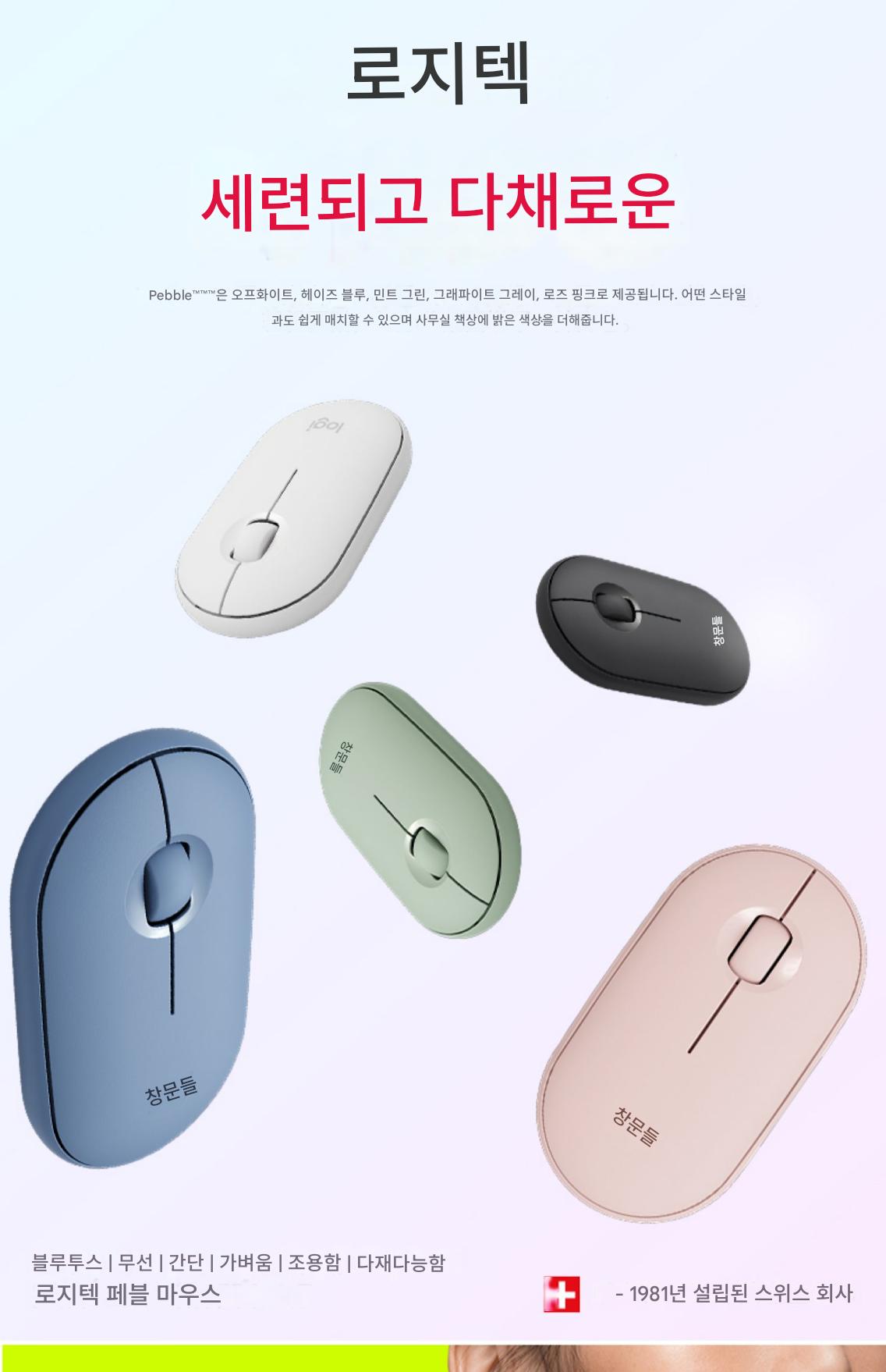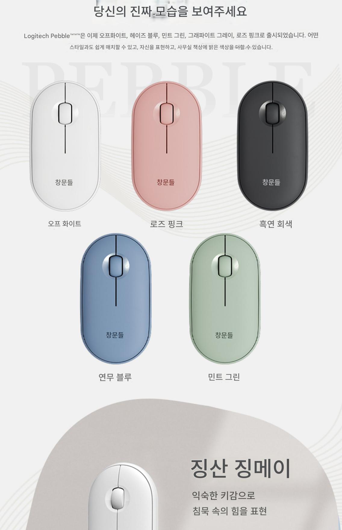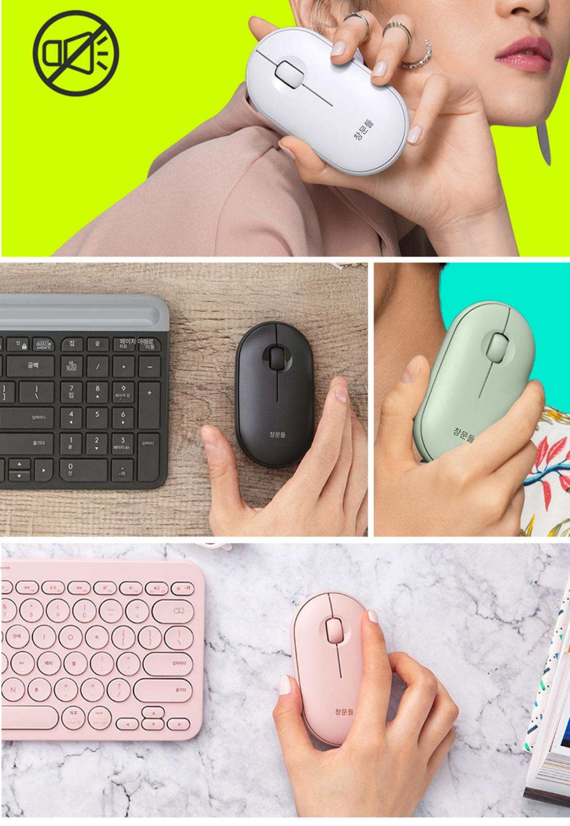 Logitech Pebble 무선 블루투스 USB 오피스 무소음 마우스 Cony Rabbit 테마 패턴
