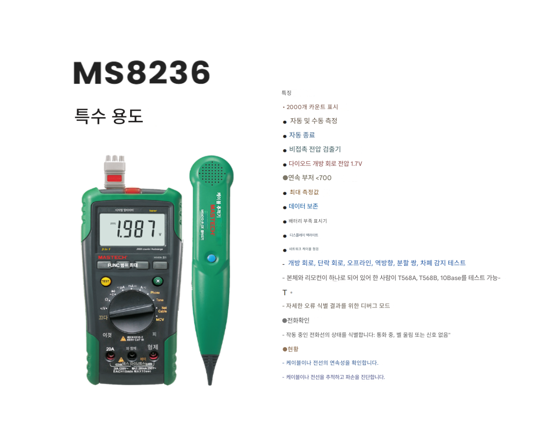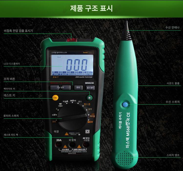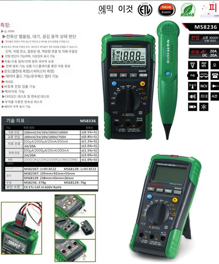 MASTECH 화이 MS8236 다기능 디지털 멀티미터 라인 검색 라인 전화선 네트워크 라인 네트워크 감지