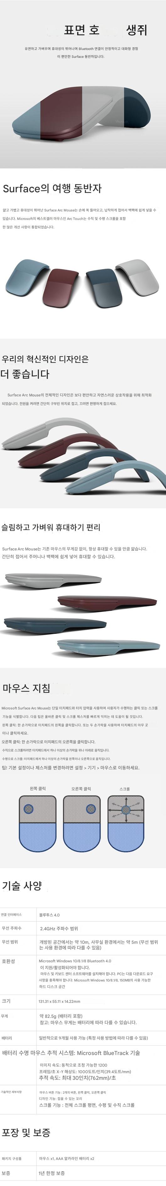 Microsoft Surface Arc Touch 4세대 무선 블루투스 폴딩 마우스 블루 섀도우 얇고 세련된 하이테크