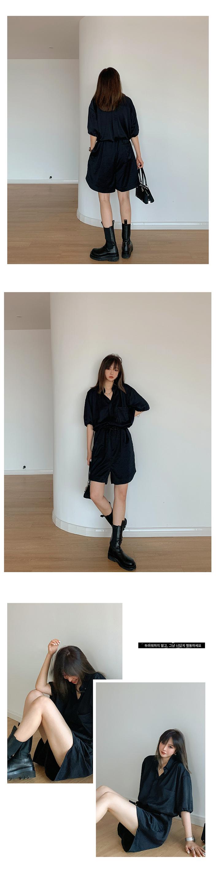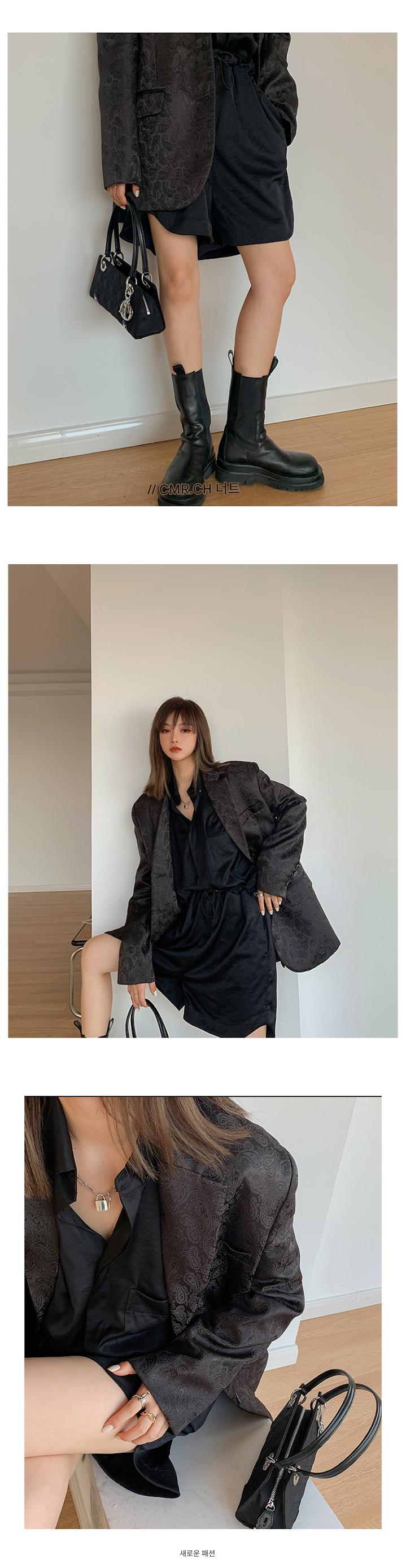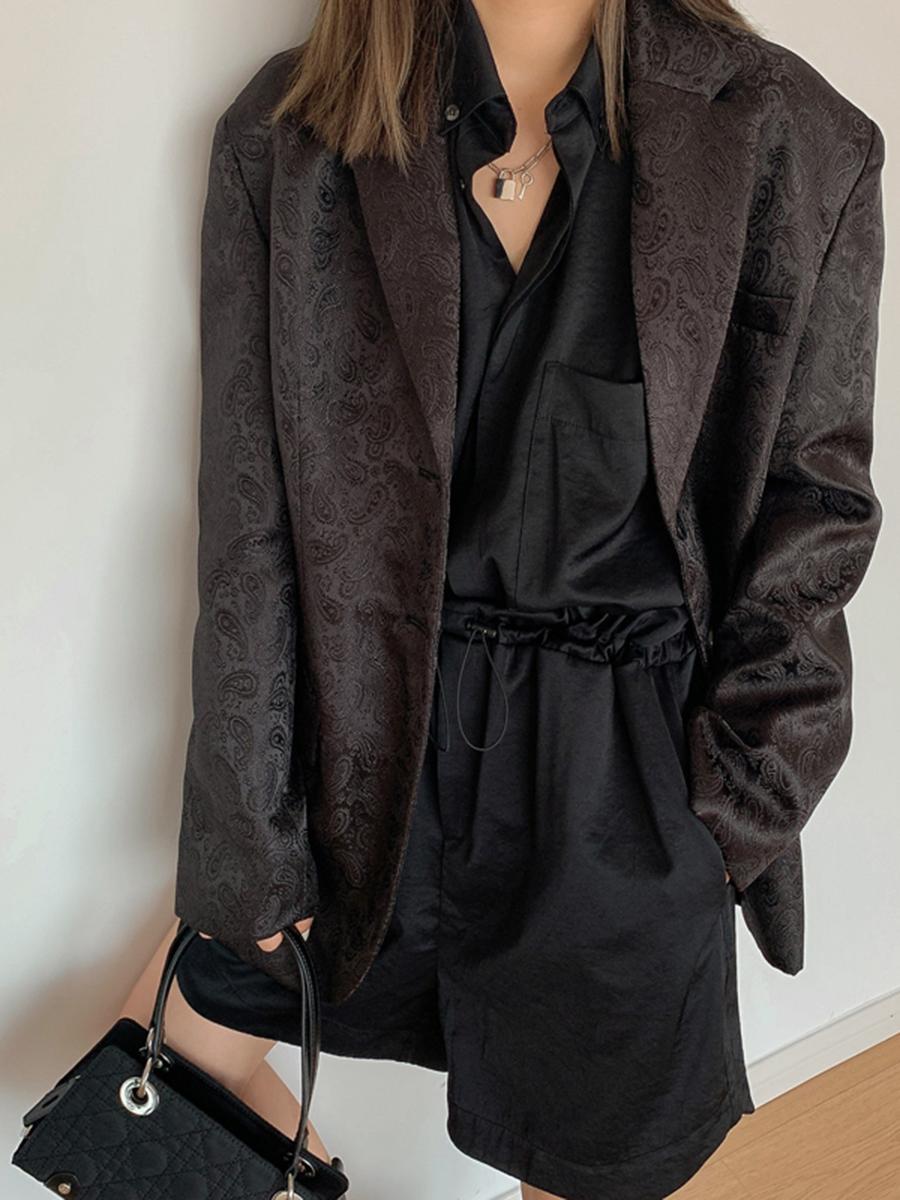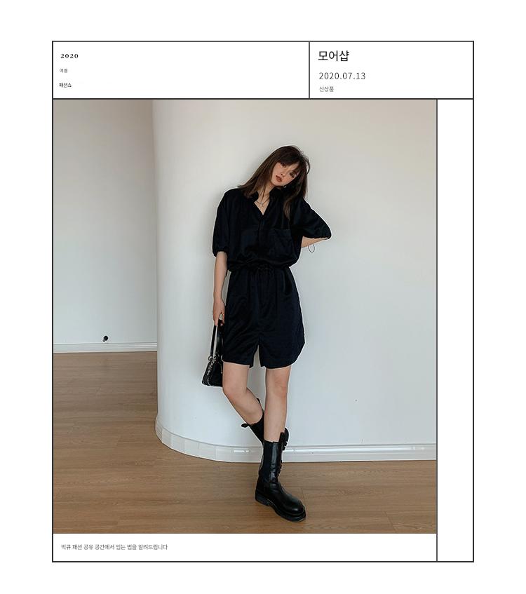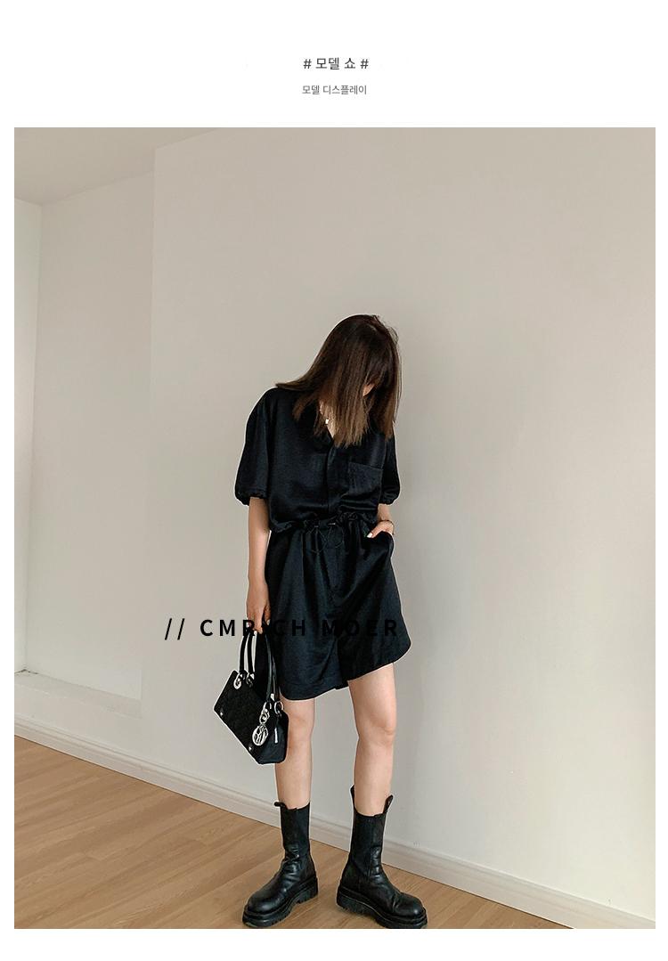 MOERSHOP 하이콜드 레이디 광감각 새틴 블랙 점프수트 루즈 웨이스트 슬림 반바지 여성 여름