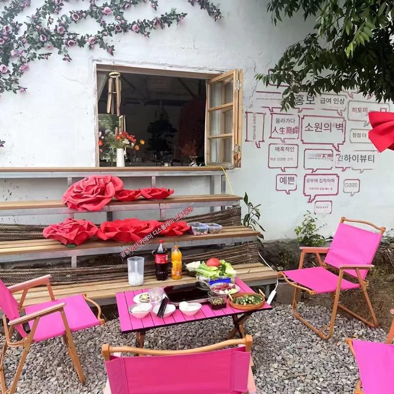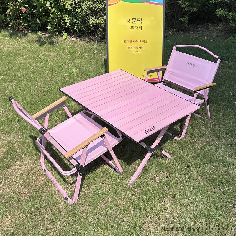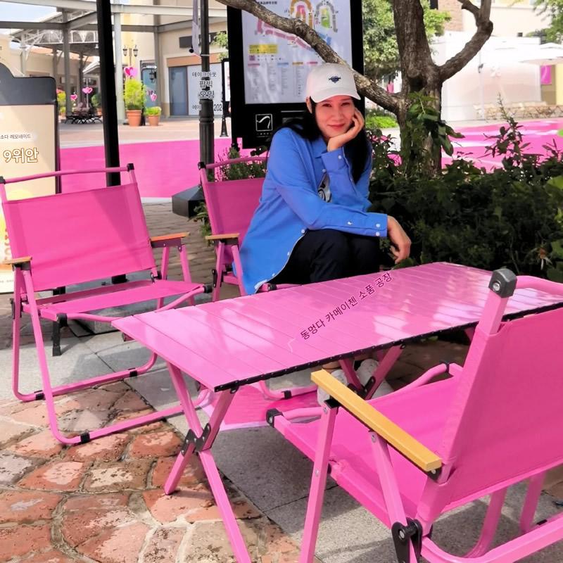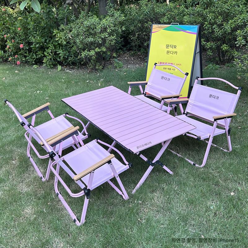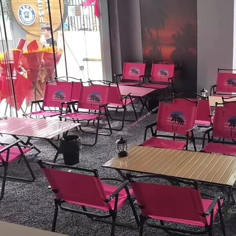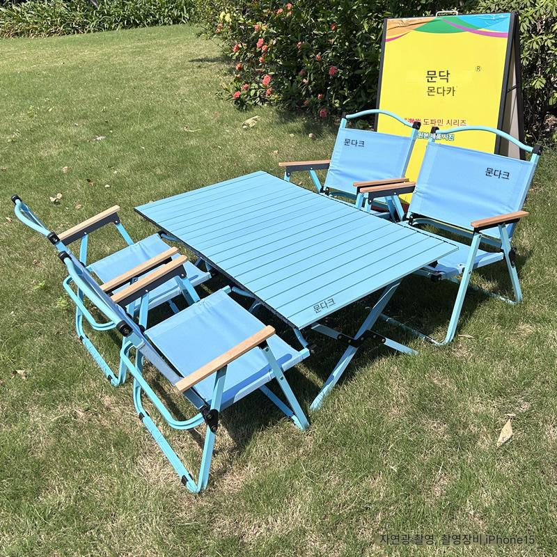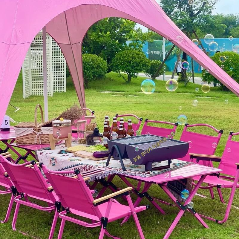 Mondaka 맞춤형 인터넷 셀러브리티 캠프 장식 바비 핑크 로즈 레드 에그롤 테이블 스티브 블루 접이식 레저 테이블 및 의자