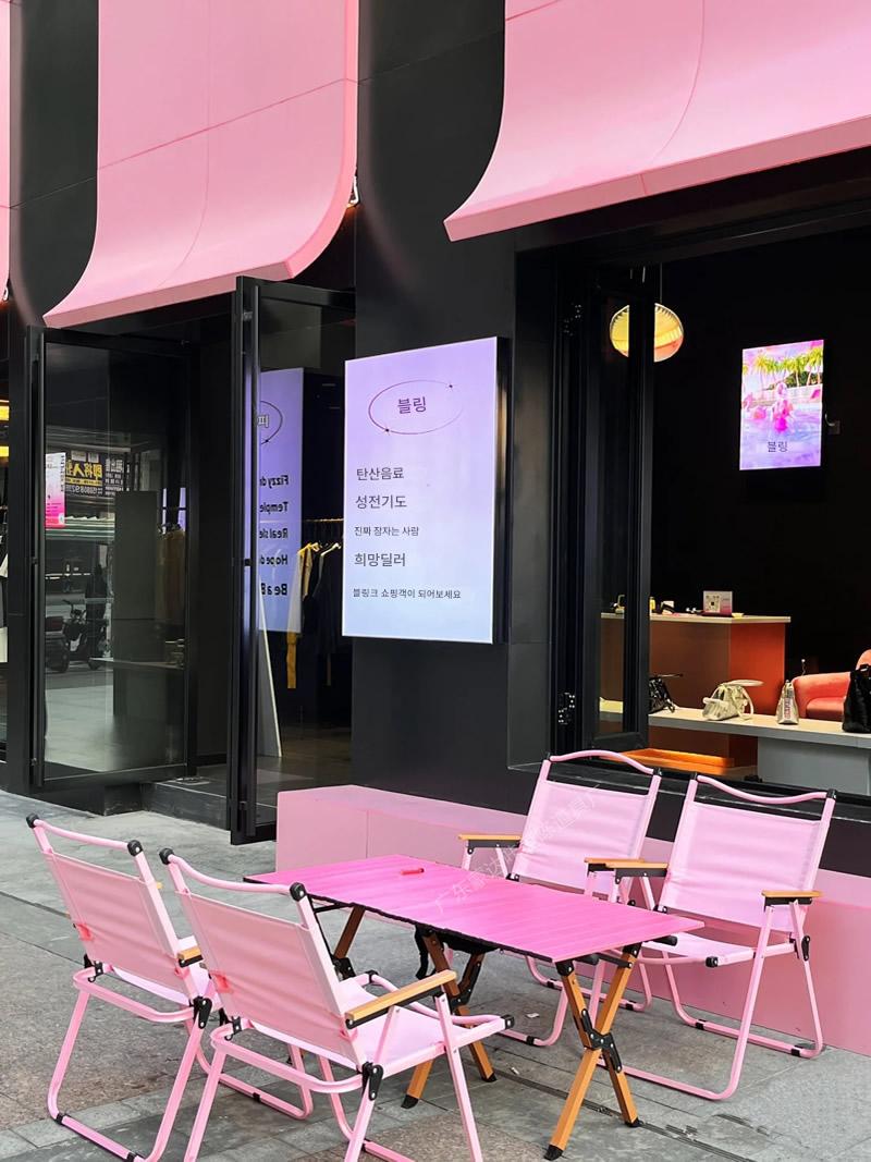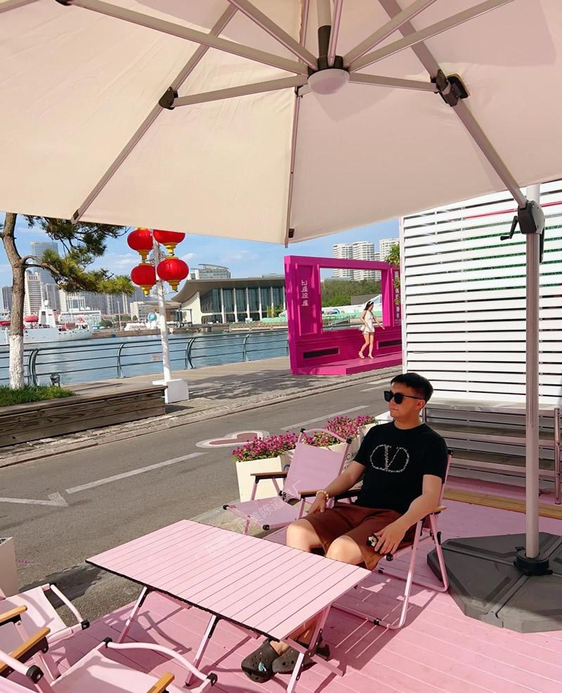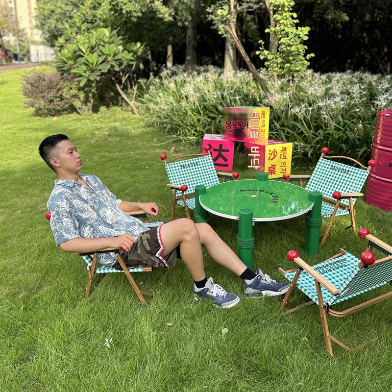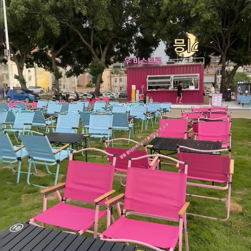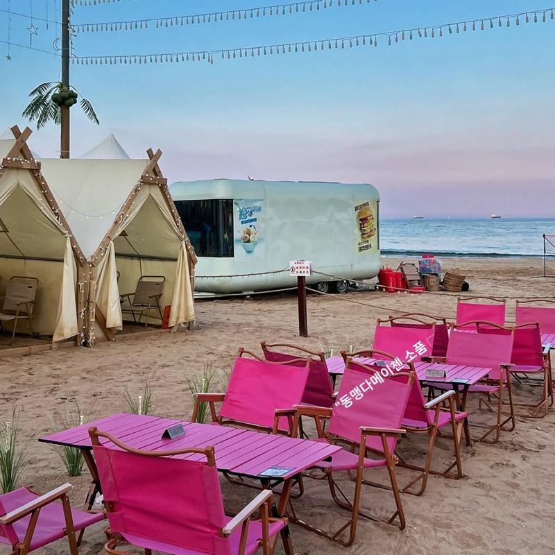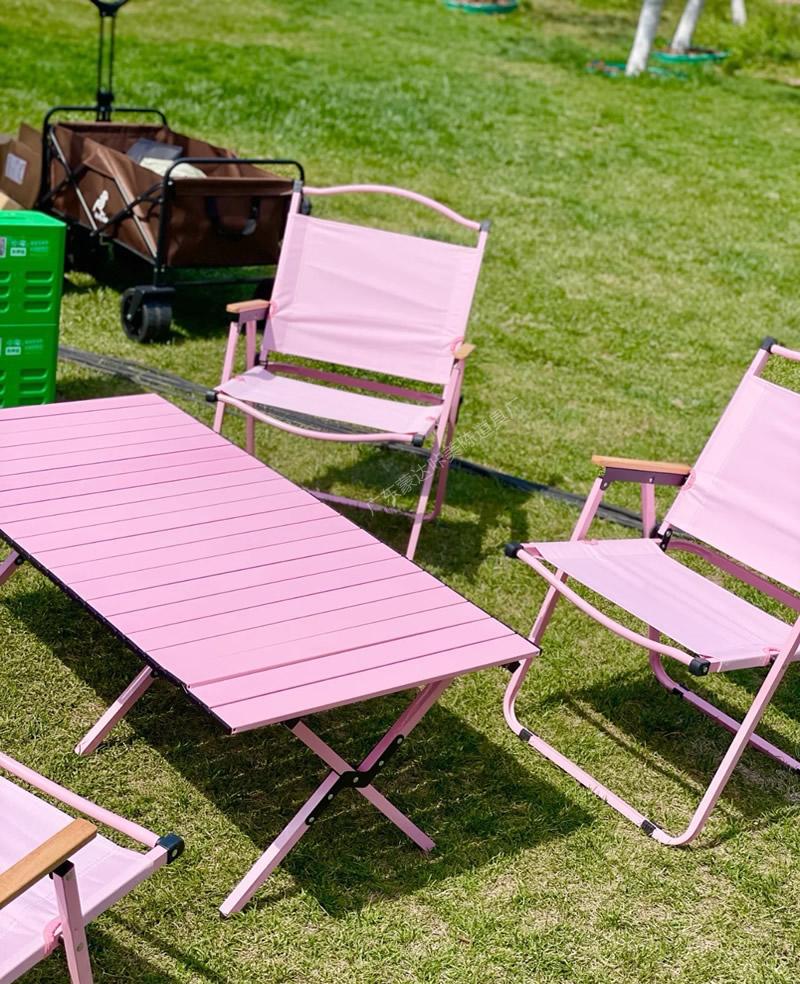 Mondaka 맞춤형 인터넷 셀러브리티 캠프 장식 바비 핑크 로즈 레드 에그롤 테이블 스티브 블루 접이식 레저 테이블 및 의자