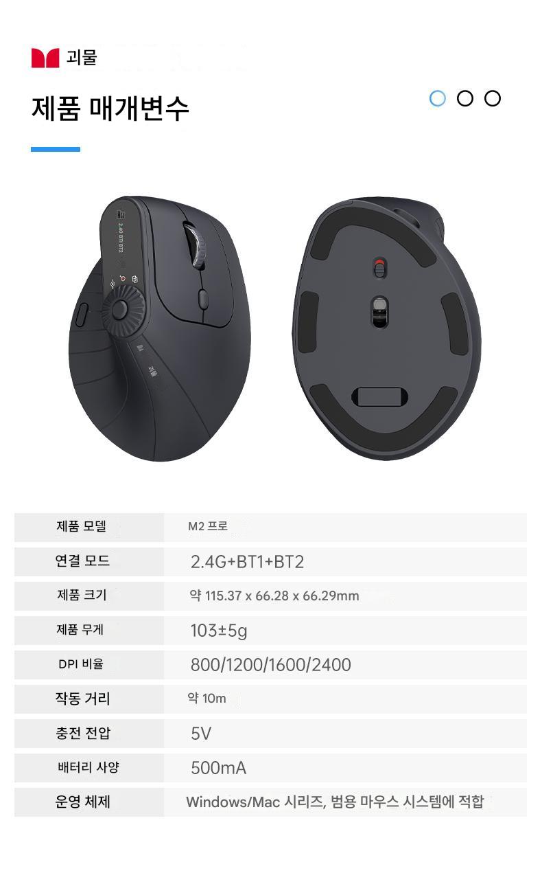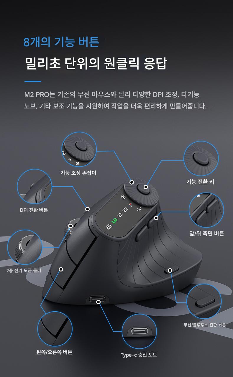 Monster M2pro 무선 마우스 인체공학적 수직 충전 2.4G 블루투스 장시간 배터리 수명 컴퓨터 사무실 홈