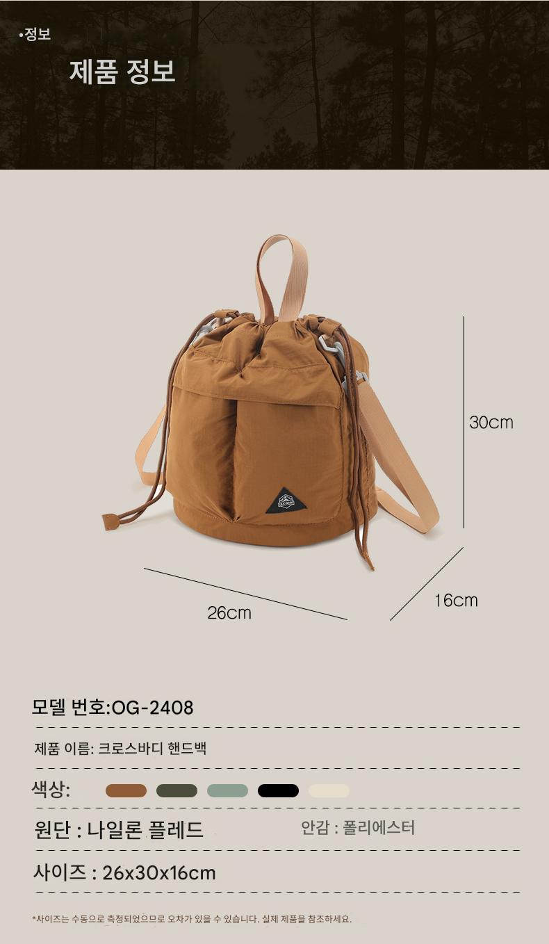 OCE GEAR 일본 패션 트렌드 경량 버킷백 방수 원숄더 크로스바디 산악 시리즈 도시형 아웃도어 스타일