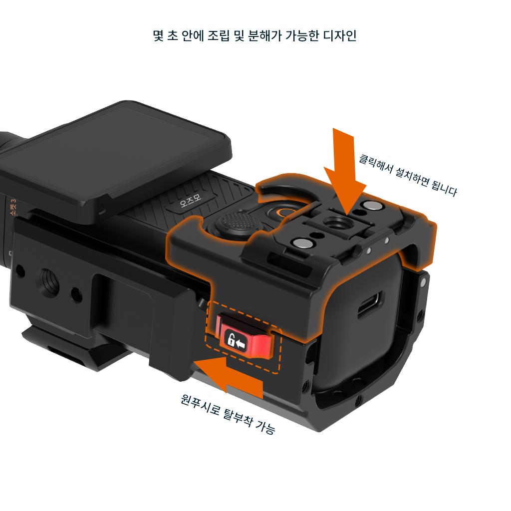 Pocket3 토끼 케이지 확장 프레임 DJI DJI 스포츠 카메라 어댑터 자동차 퀵 릴리스 라이딩 브라켓에 적용 가능