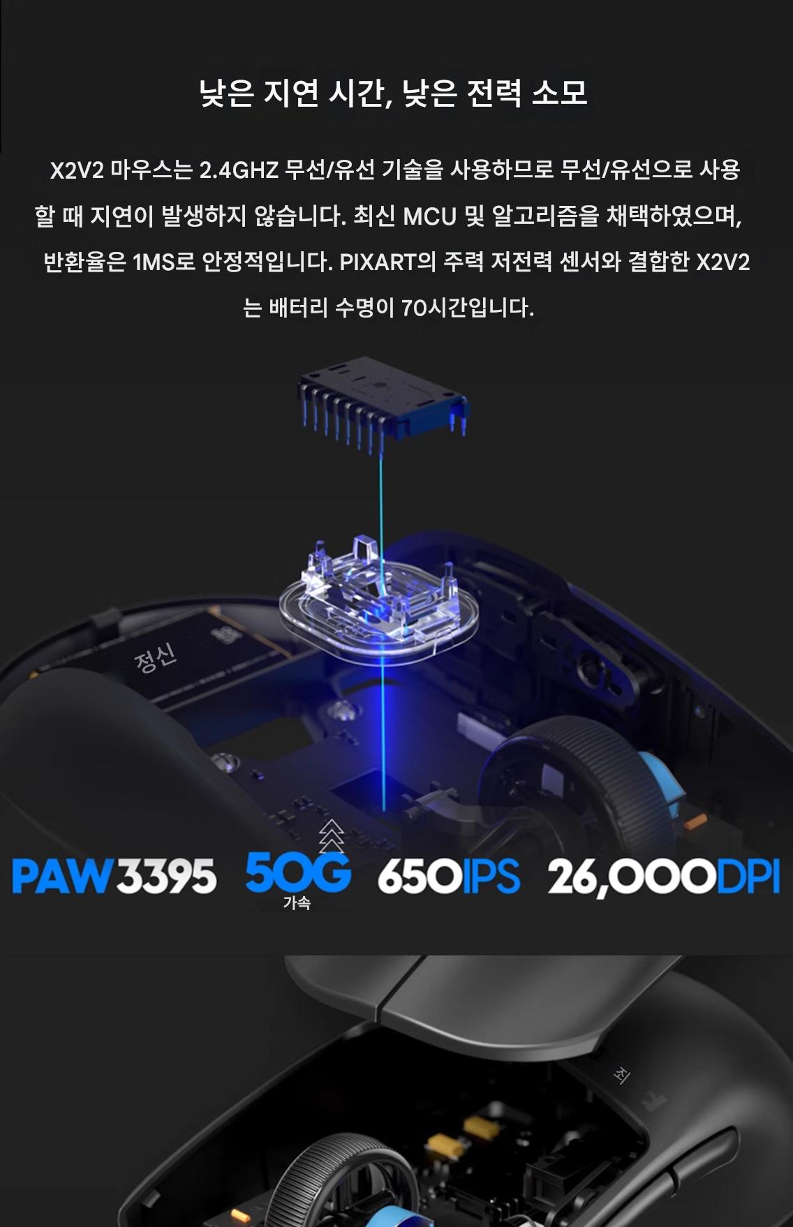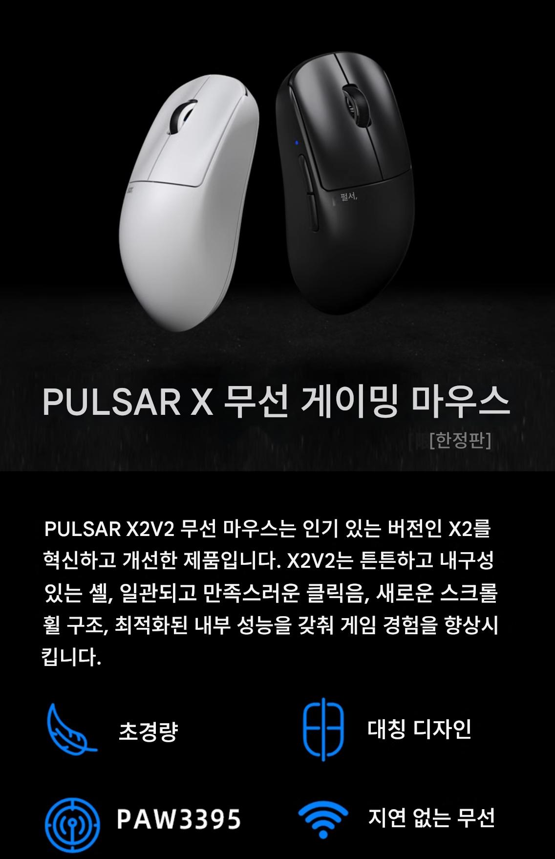 Pulsar X2V2 무선 게이밍 마우스 경량 무선 3395 새로운 4K 동글 70H 배터리 수명