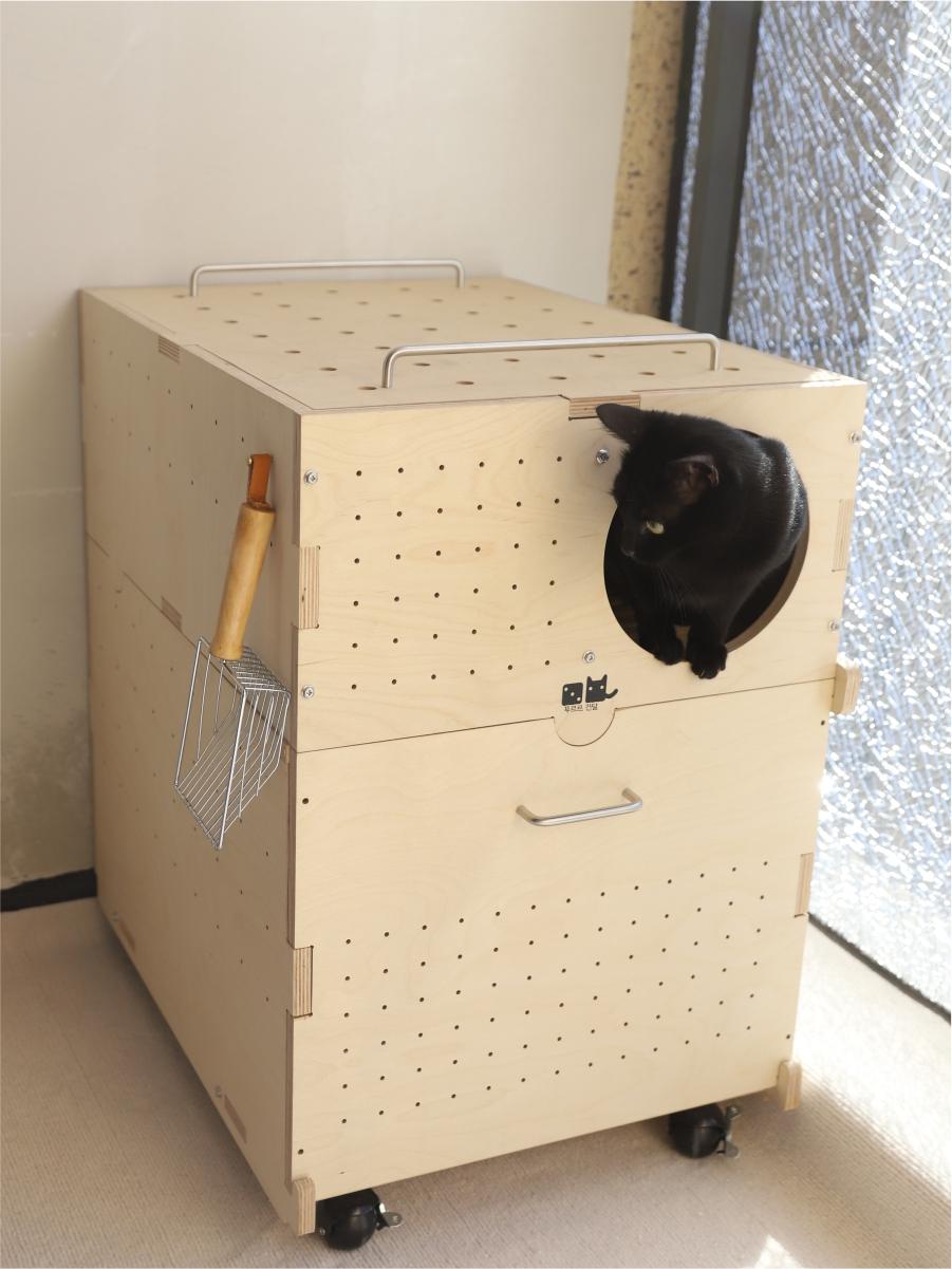 PurrKnave 대형 고양이용 변기 상자 맞춤형 상단 진입형 탈취제 반밀폐형 방수 2층 고양이 변기