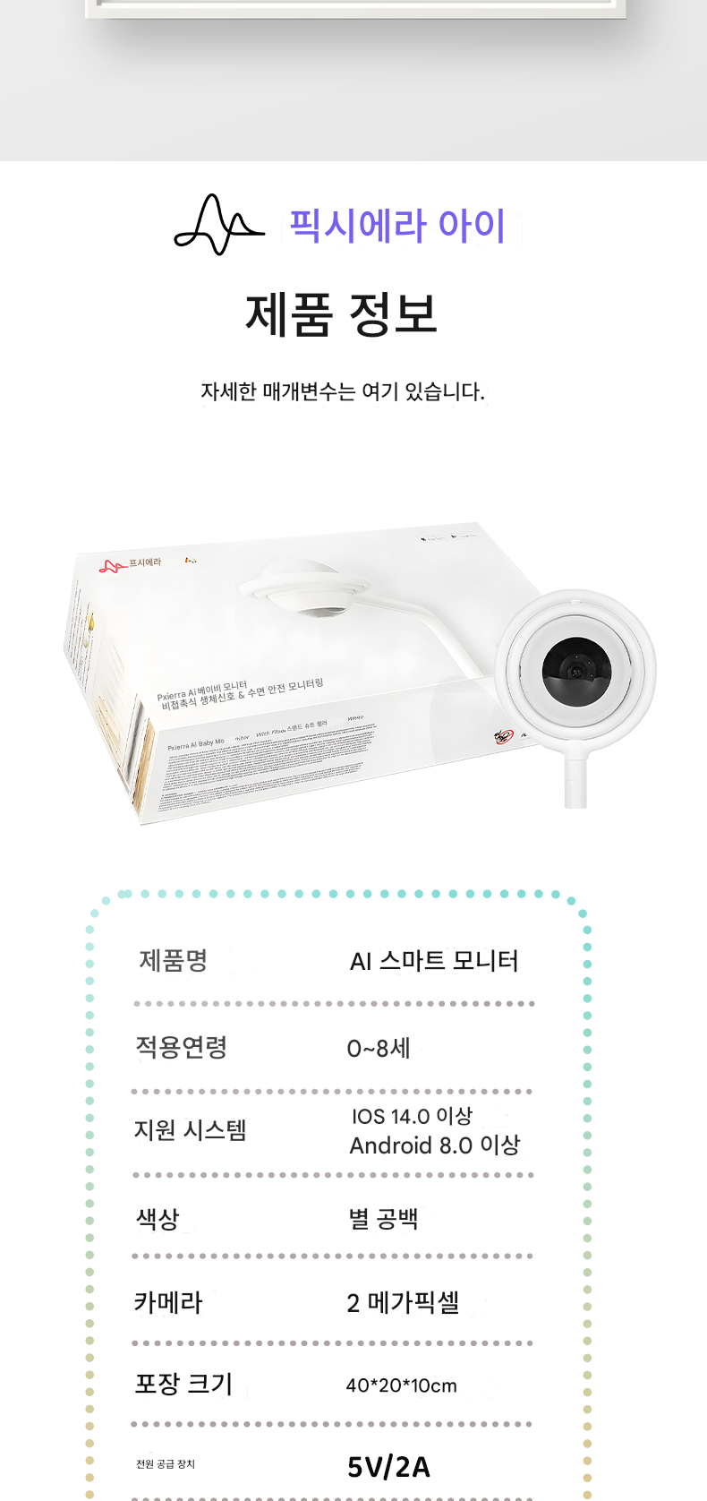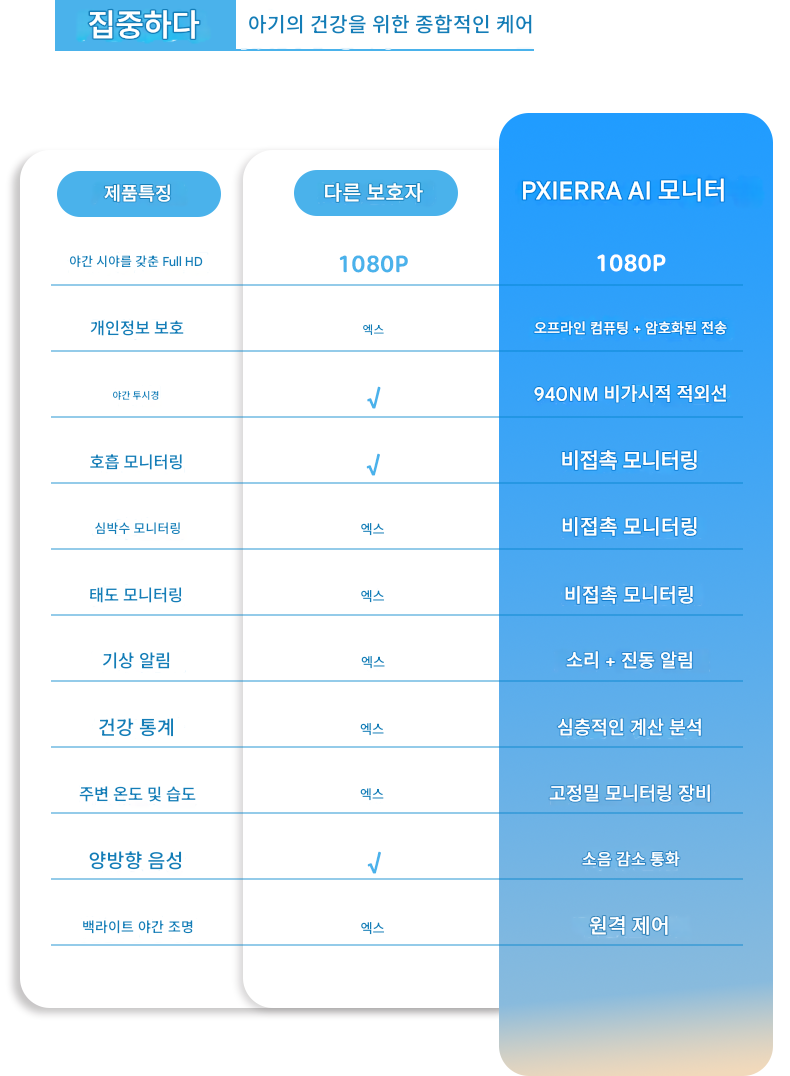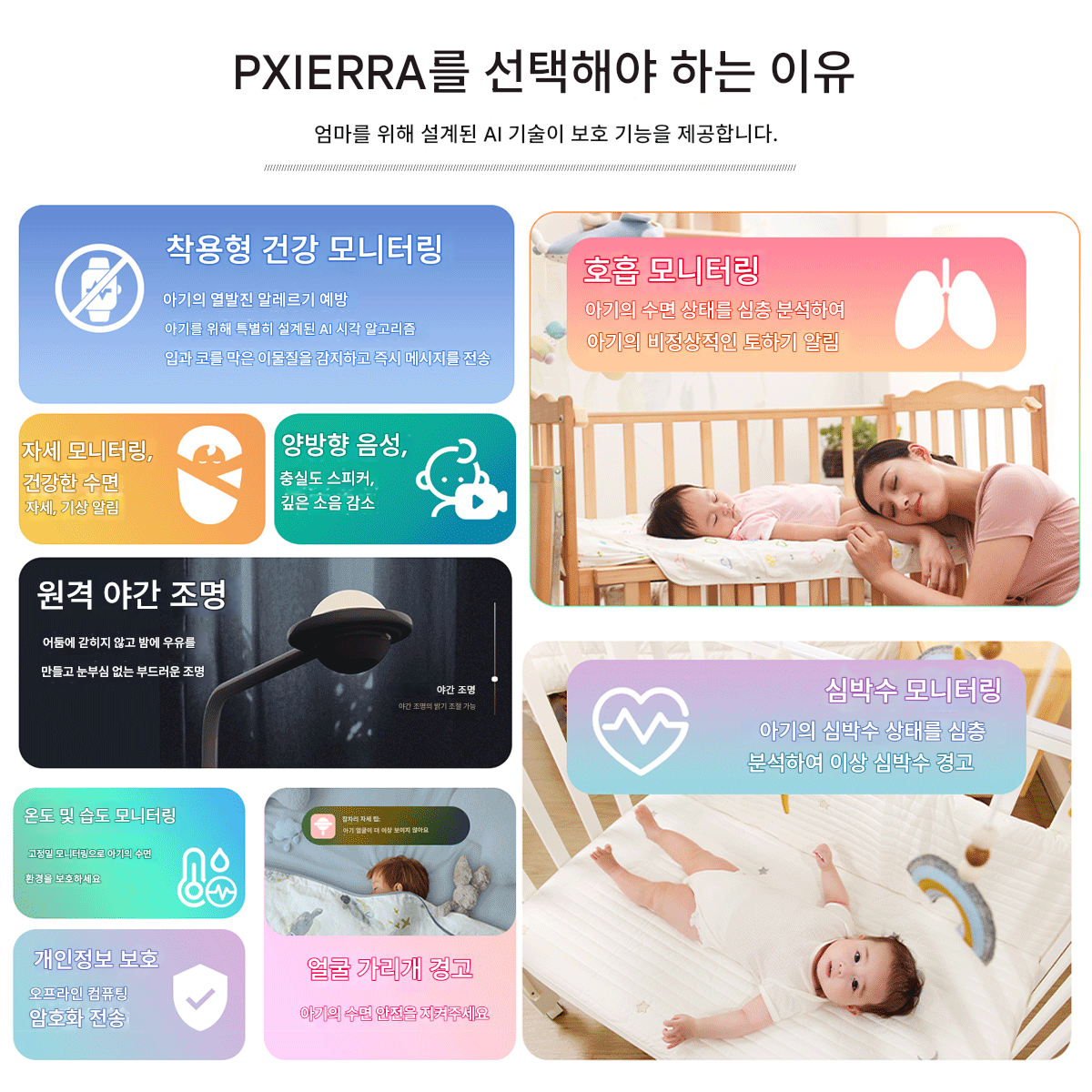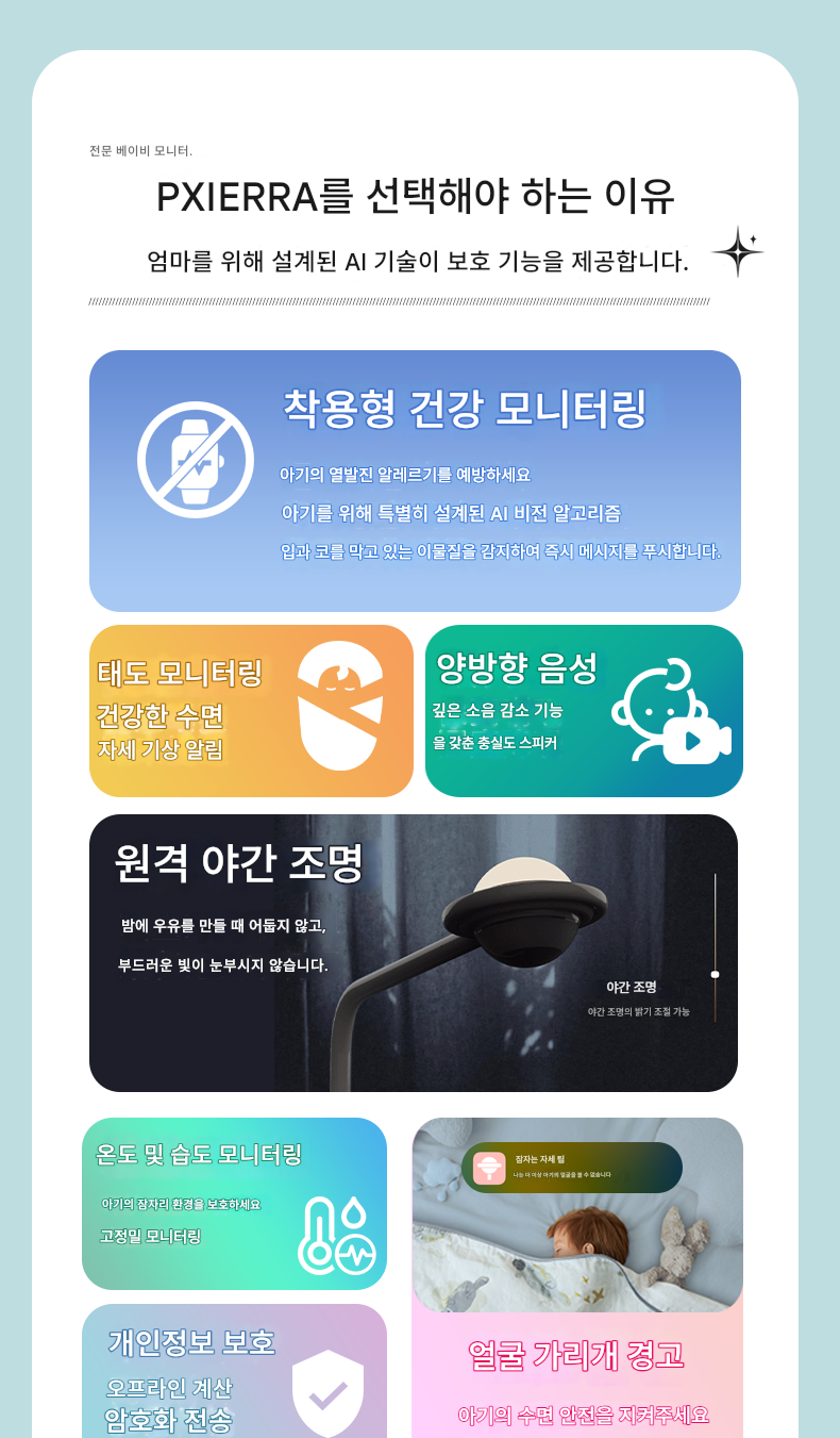 PXIERRA 스마트 AI 베이비 카메라 비접촉 생체 신호 모니터링 아동용 모니터 모자 케어