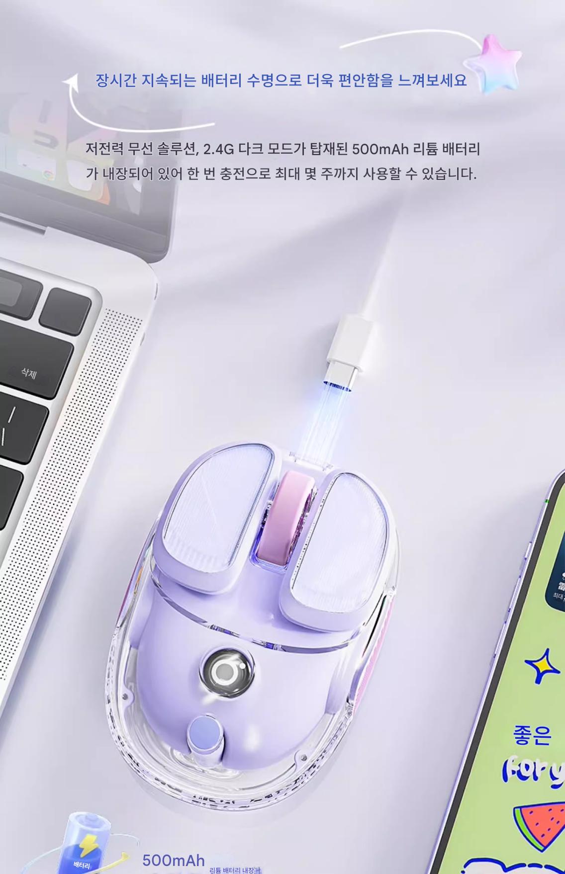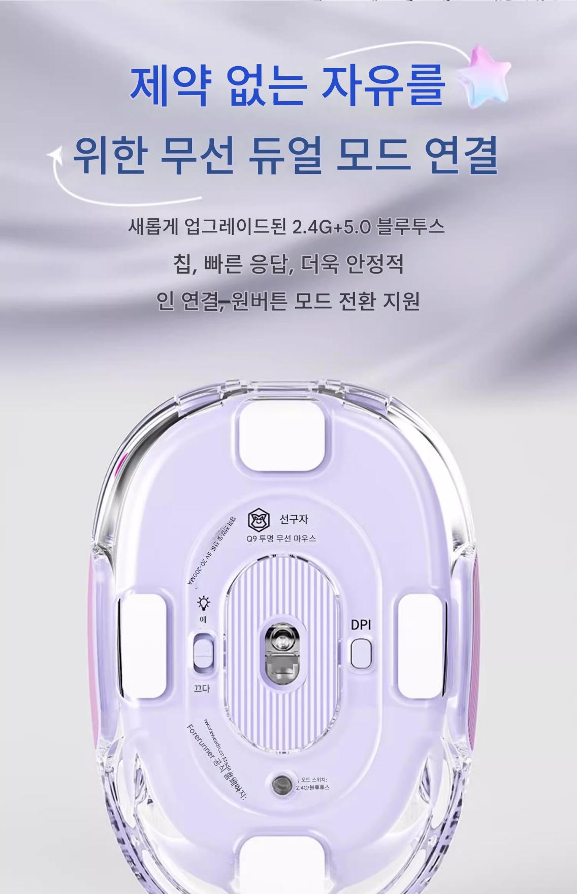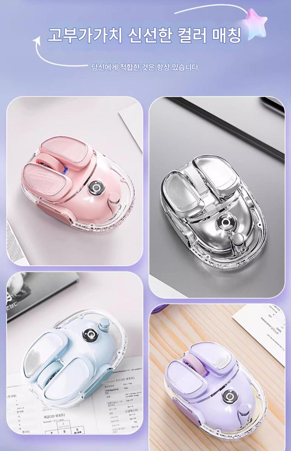 Q9 무선 블루투스 투명 마우스 음소거 만화 귀여운 소녀 사무실 노트북 태블릿 아이패드