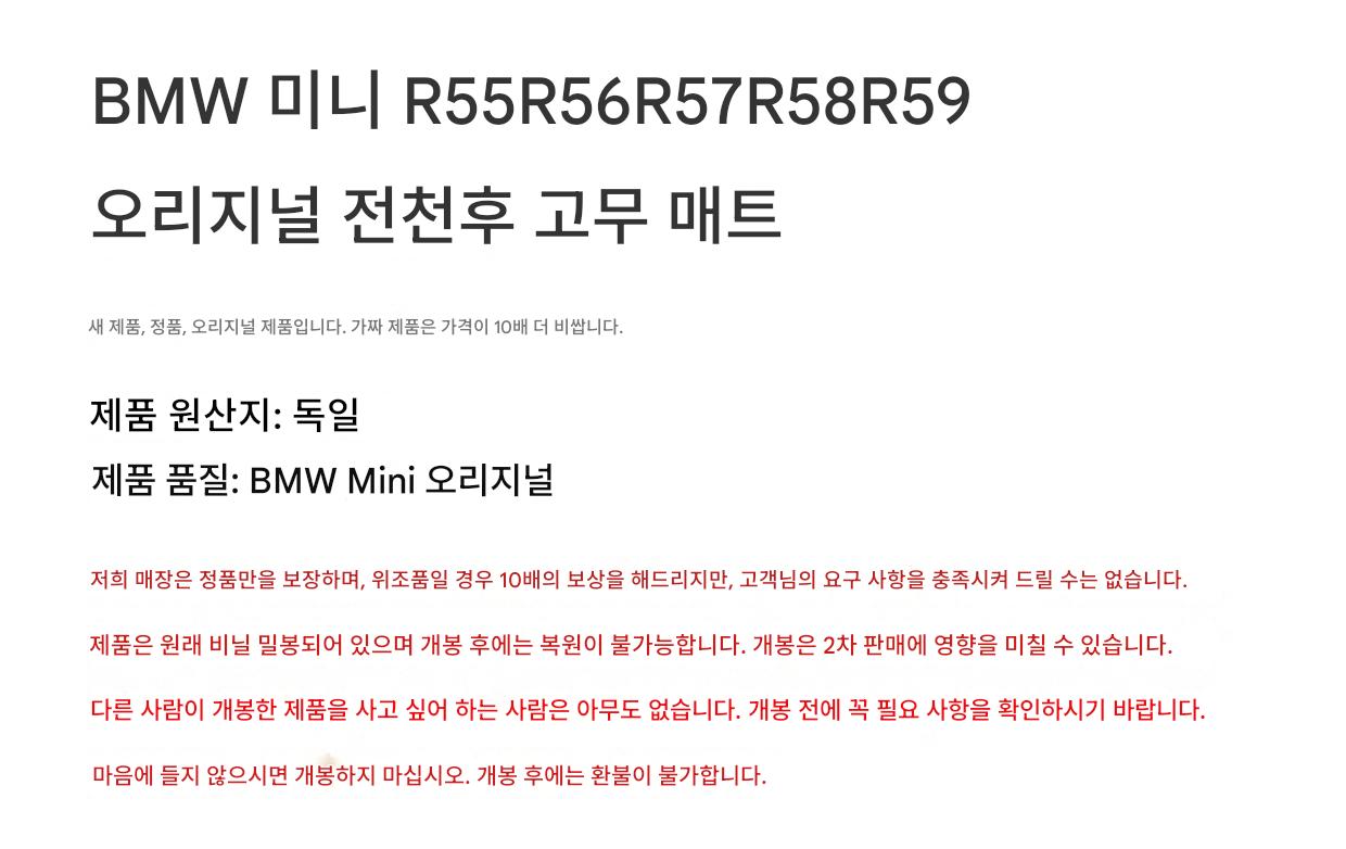 R56R55R57R58R59cooper용 미니 MINI 정품 전천후 고무 매트