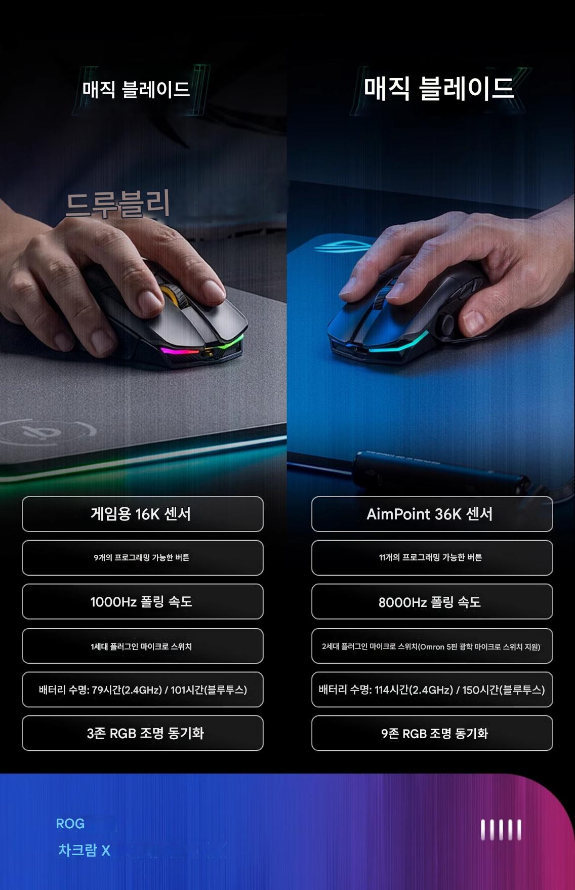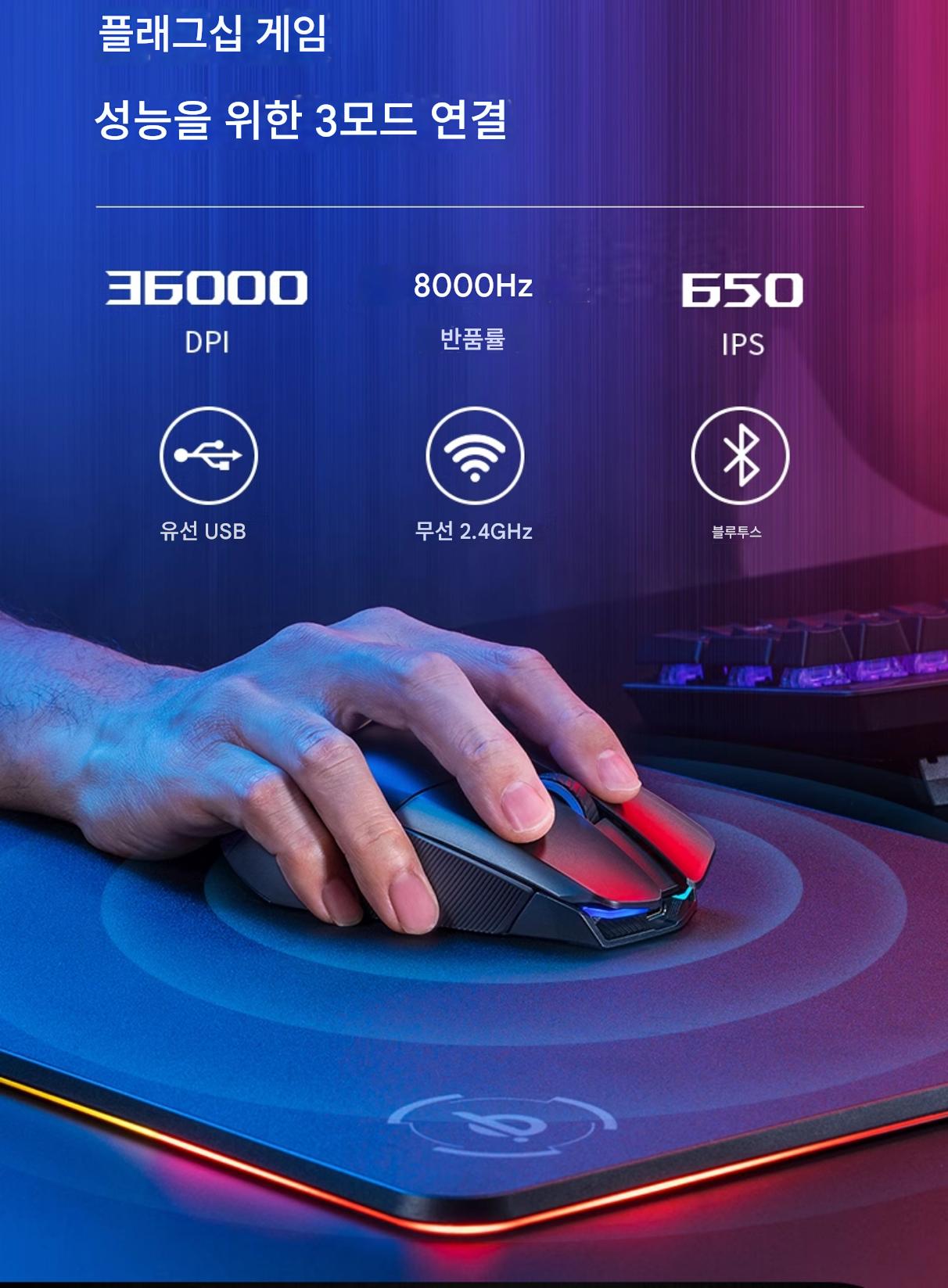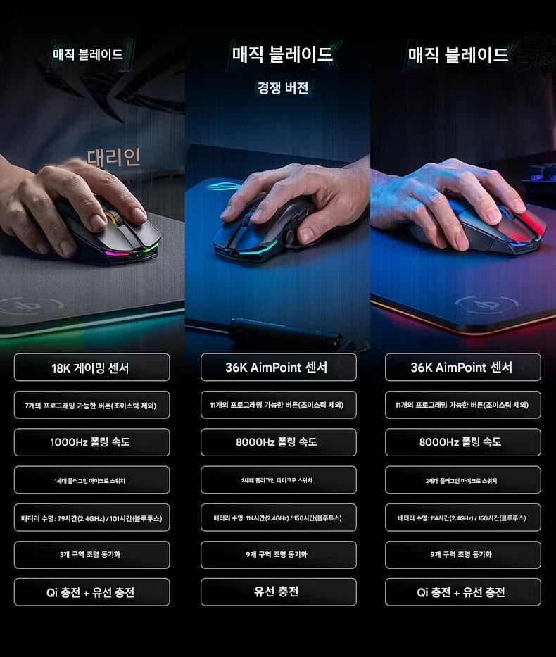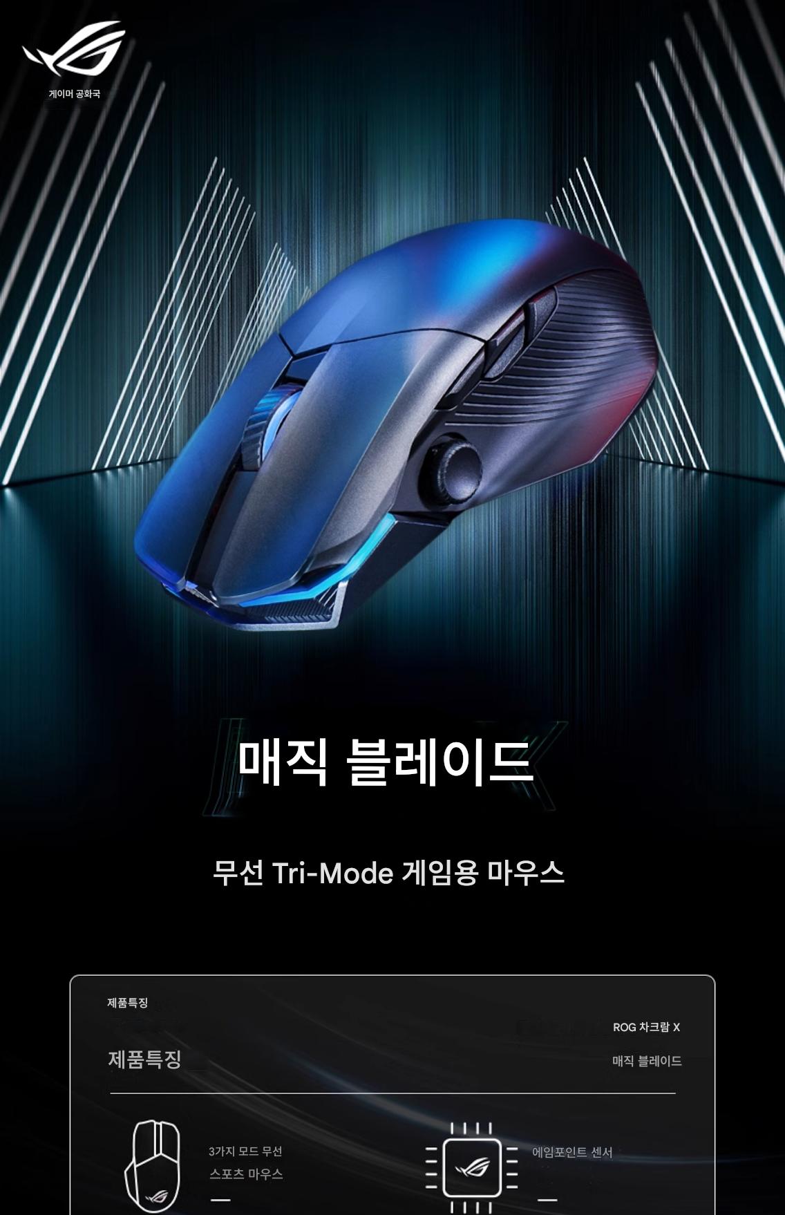 ROG Gamer Kingdom Magic Blade X Competition Edition 유선 무선 블루투스 3모드 게이밍 마우스 QI 고속 충전