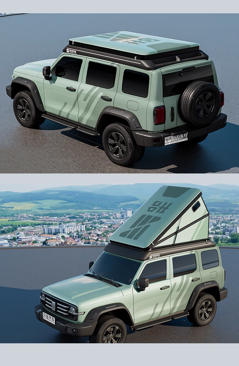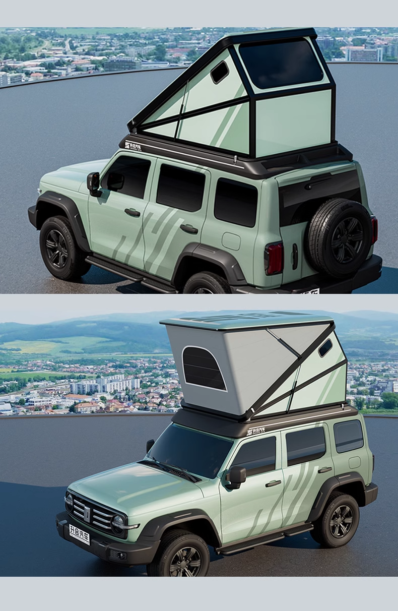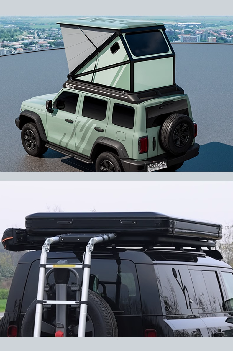 Shenghe 지붕 텐트 가드 하드 리프팅 지붕 대형 공간 에어컨 나무 난방 태양열 캠핑 장비 자율 주행 여행 개조
