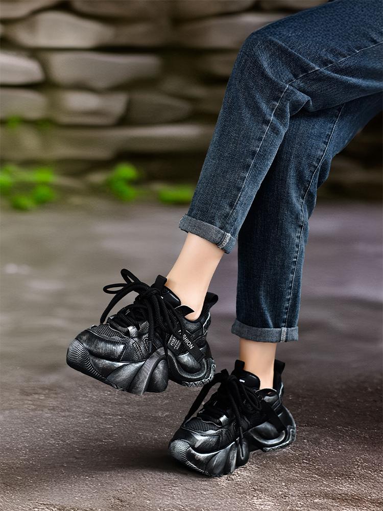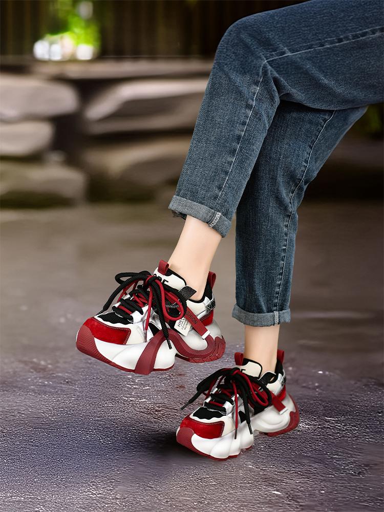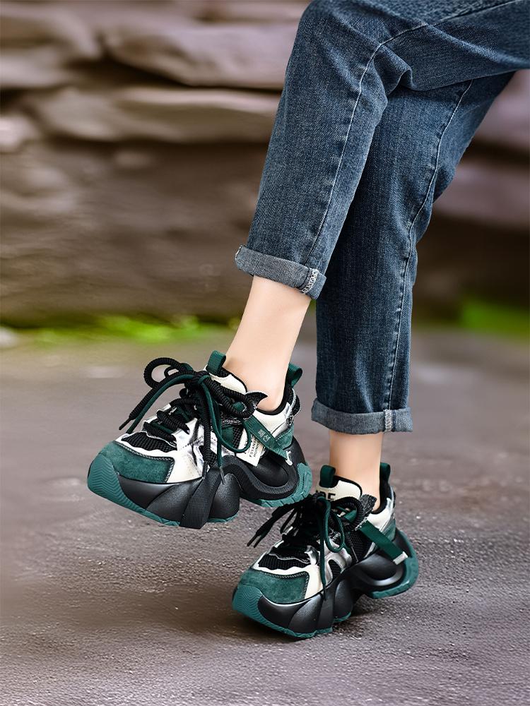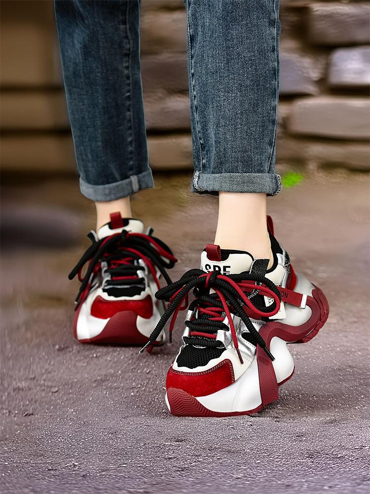 Siqige 2025 봄과 가을 정품 가죽 두꺼운 밑창 아빠 신발 여성용 색상 매칭 핸드메이드 기질 스포츠 캐주얼 신발 편안한 발 관리