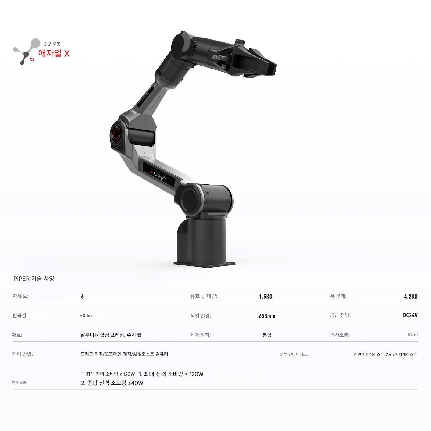 Songling의 새로운 제품 PiPER 6축 경량 교육 및 과학 연구 현장 ROS 협업 오픈 소스 유연한 로봇 팔