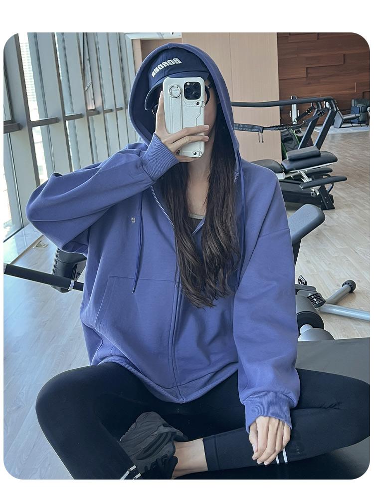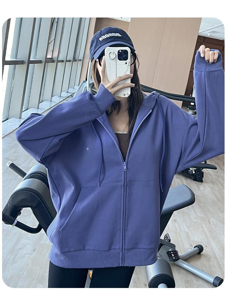 SULELIAN 루즈 캐주얼 스포츠 재킷 인 스타일 후드 요가 수트 스웨터 긴팔 러닝 탑 가을과 겨울
