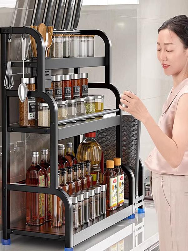 T4kzi 주방 조미료 선반 조리대 젓가락 칼꽂이 다기능 조미료 다층 선반 주방용품 보관 선반