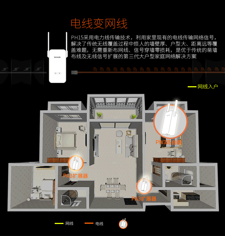 Tenda Gigabit Power Cat 벽 신호를 통한 무선 라우터 한 쌍 HyFi 익스텐더 IPTV