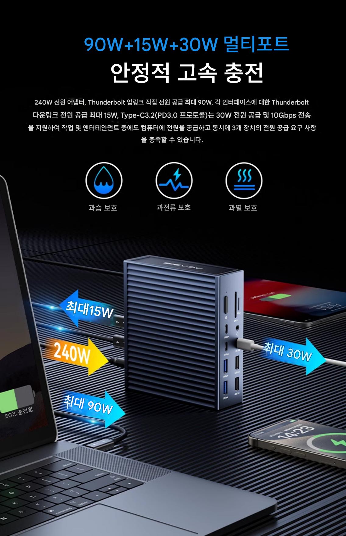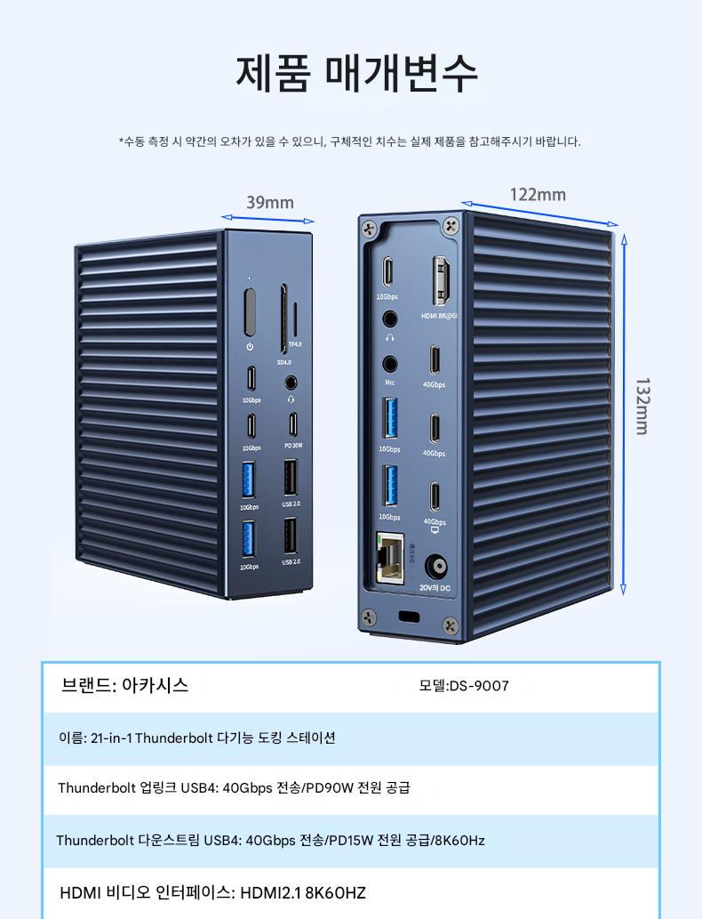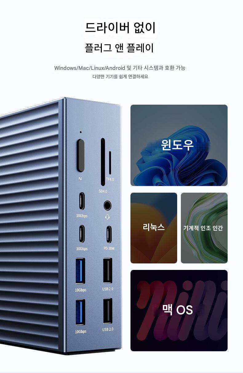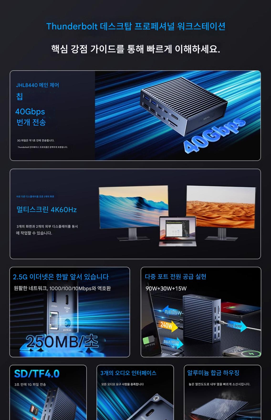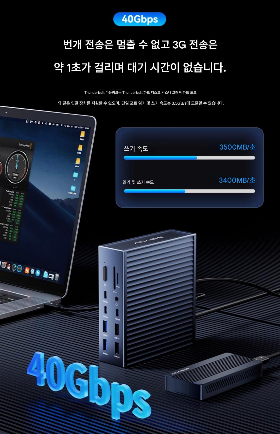 Thunderbolt 4 도킹 스테이션 Typec 확장 도크 Thunderbolt4 데스크탑 워크스테이션 USB4.0 스플리터 고속 충전