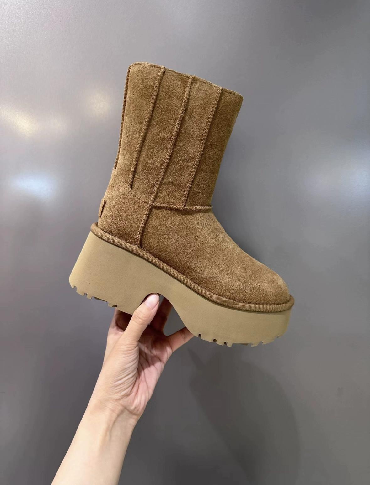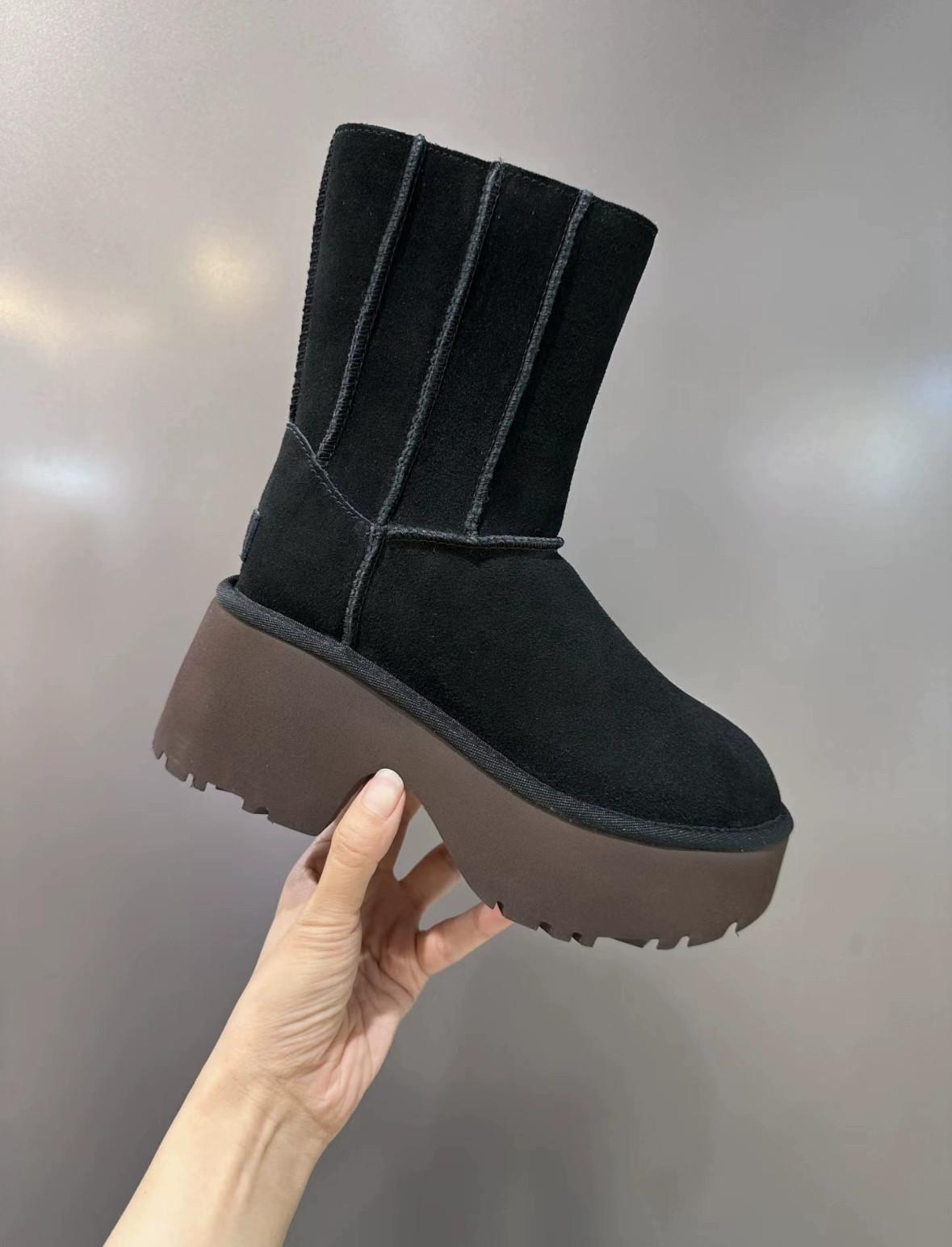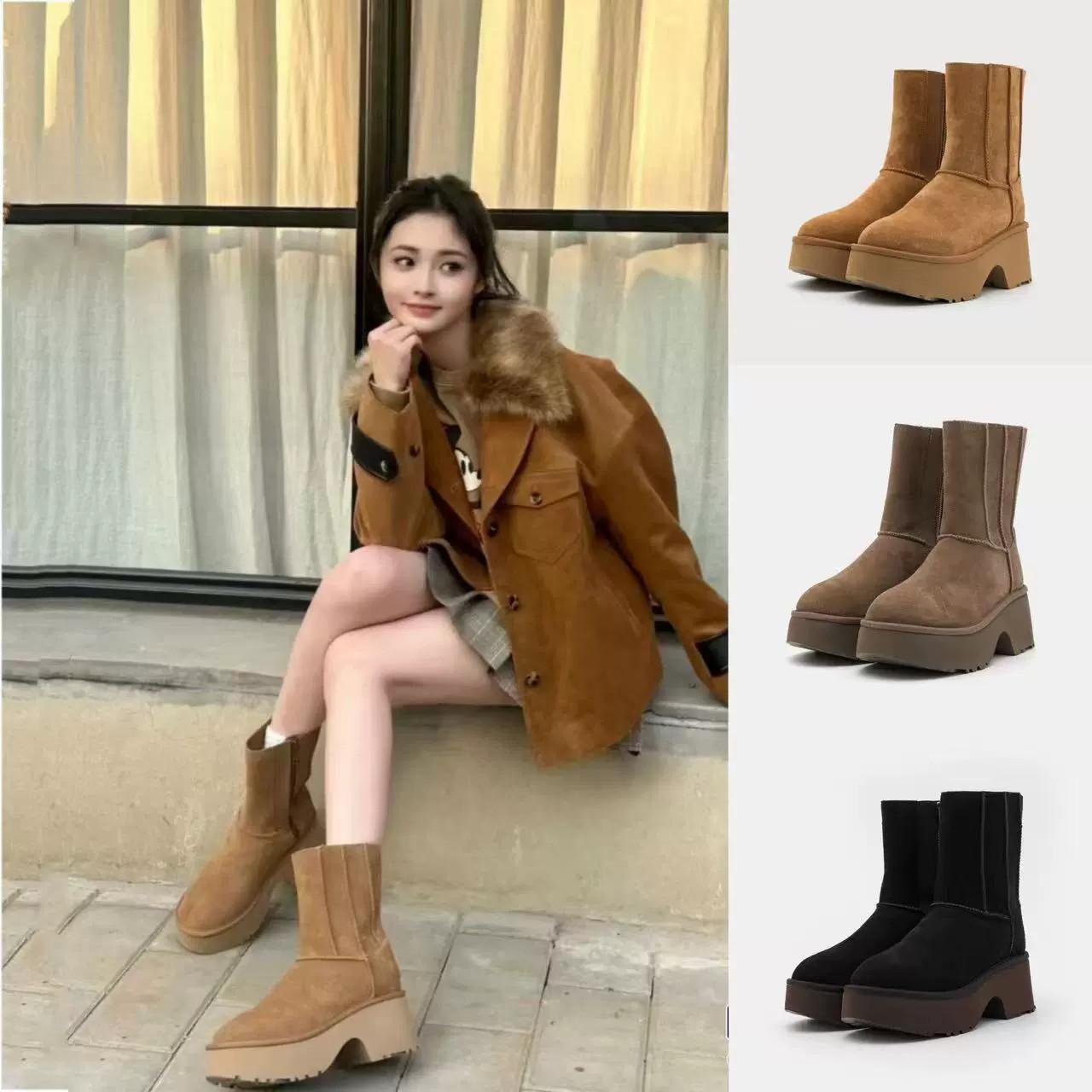 UGG 카운터 스트레이트 헤어 여성용 편안하고 세련된 웨지 힐 두꺼운 바닥 인어 펜슬 미드 튜브 스노우 부츠 1158313