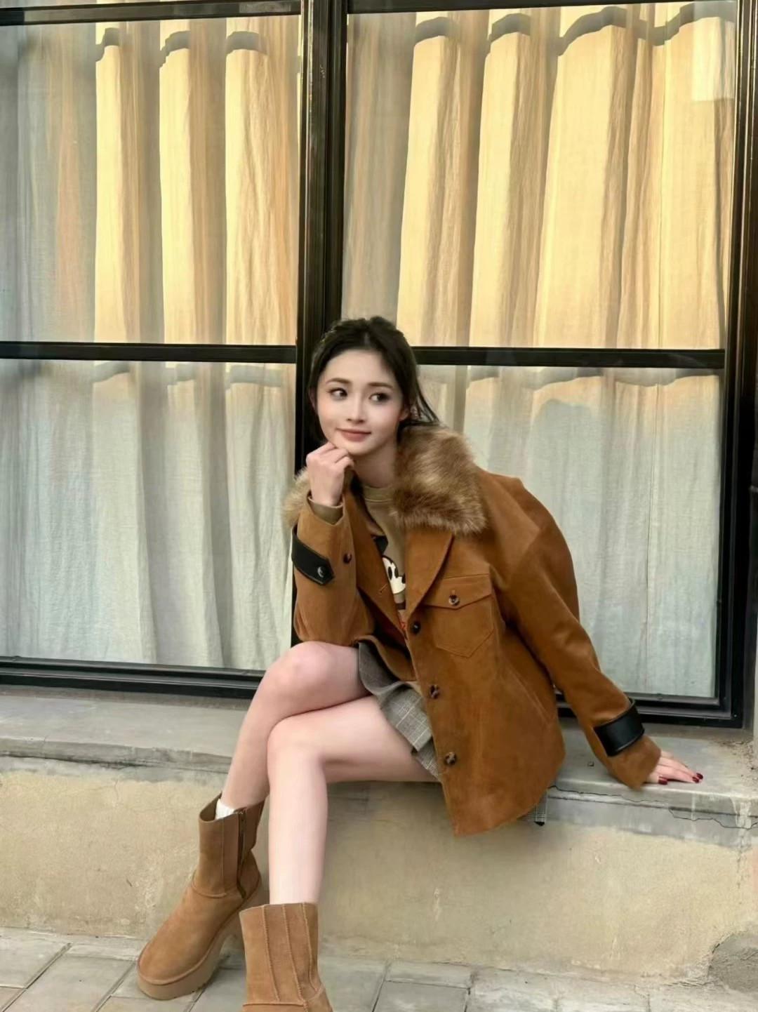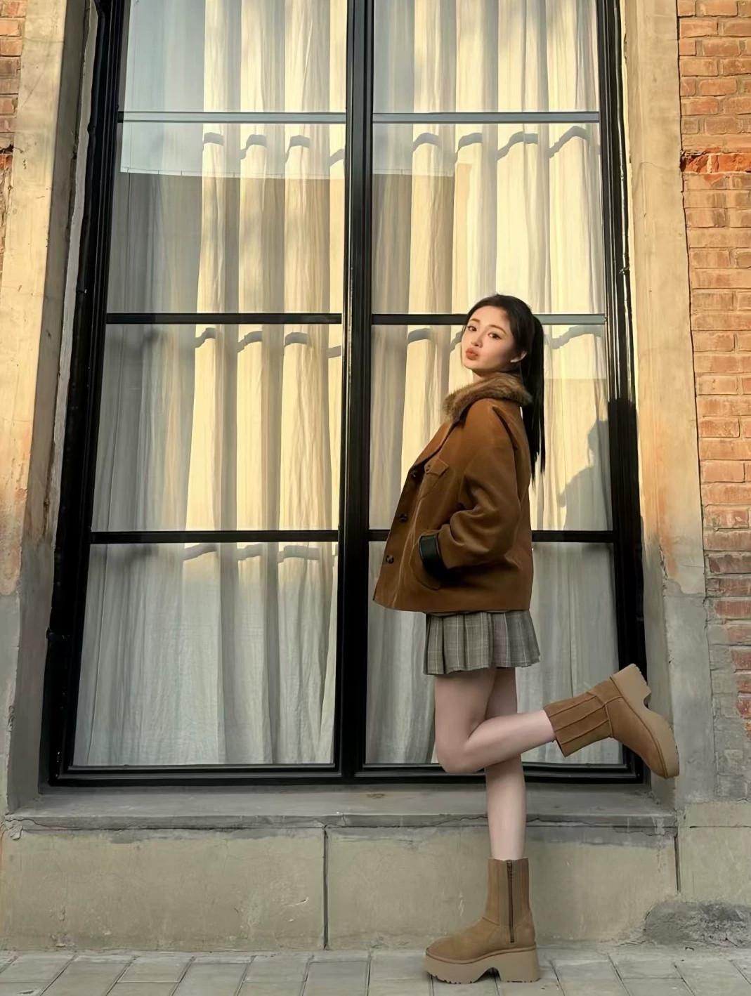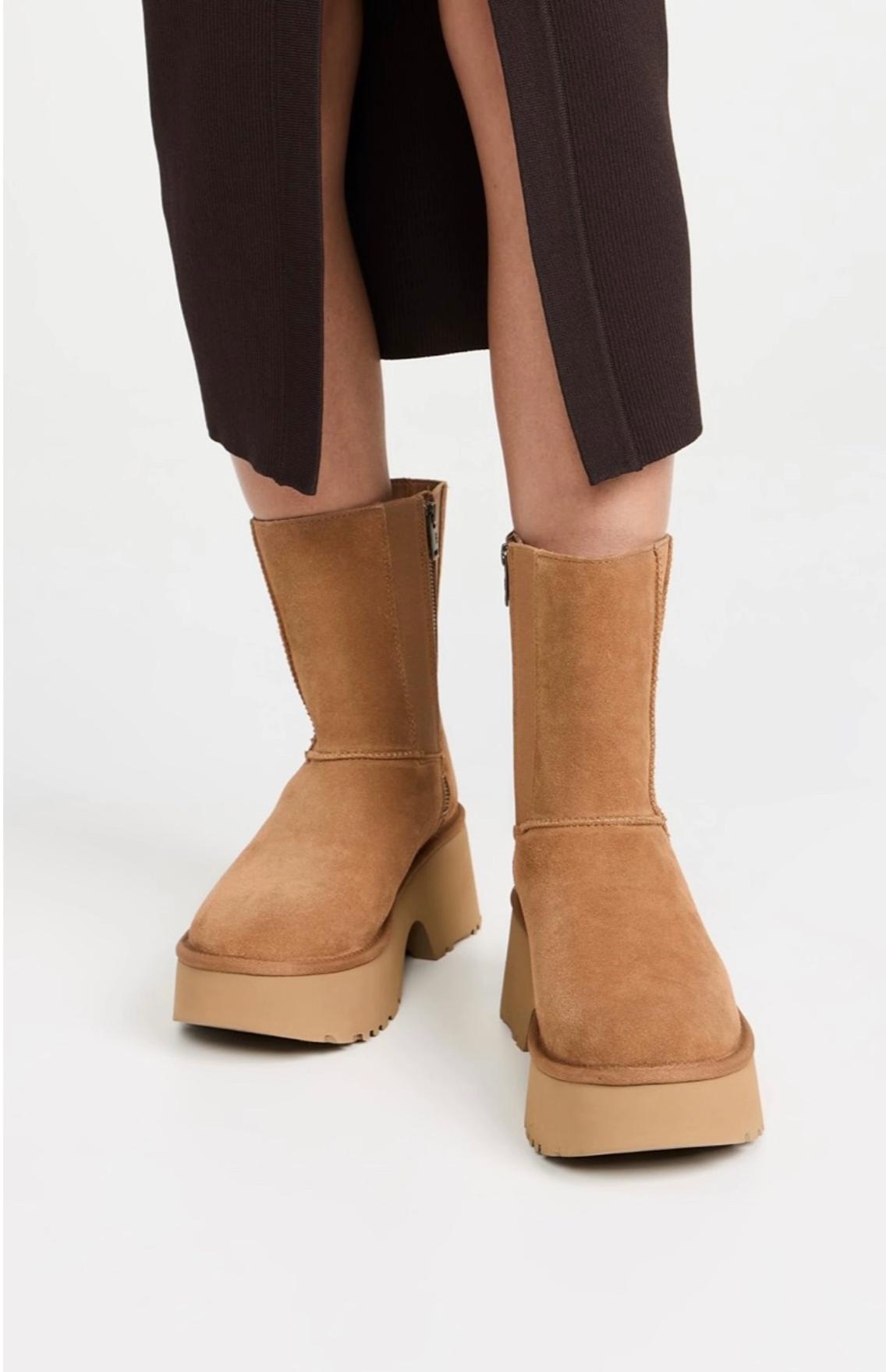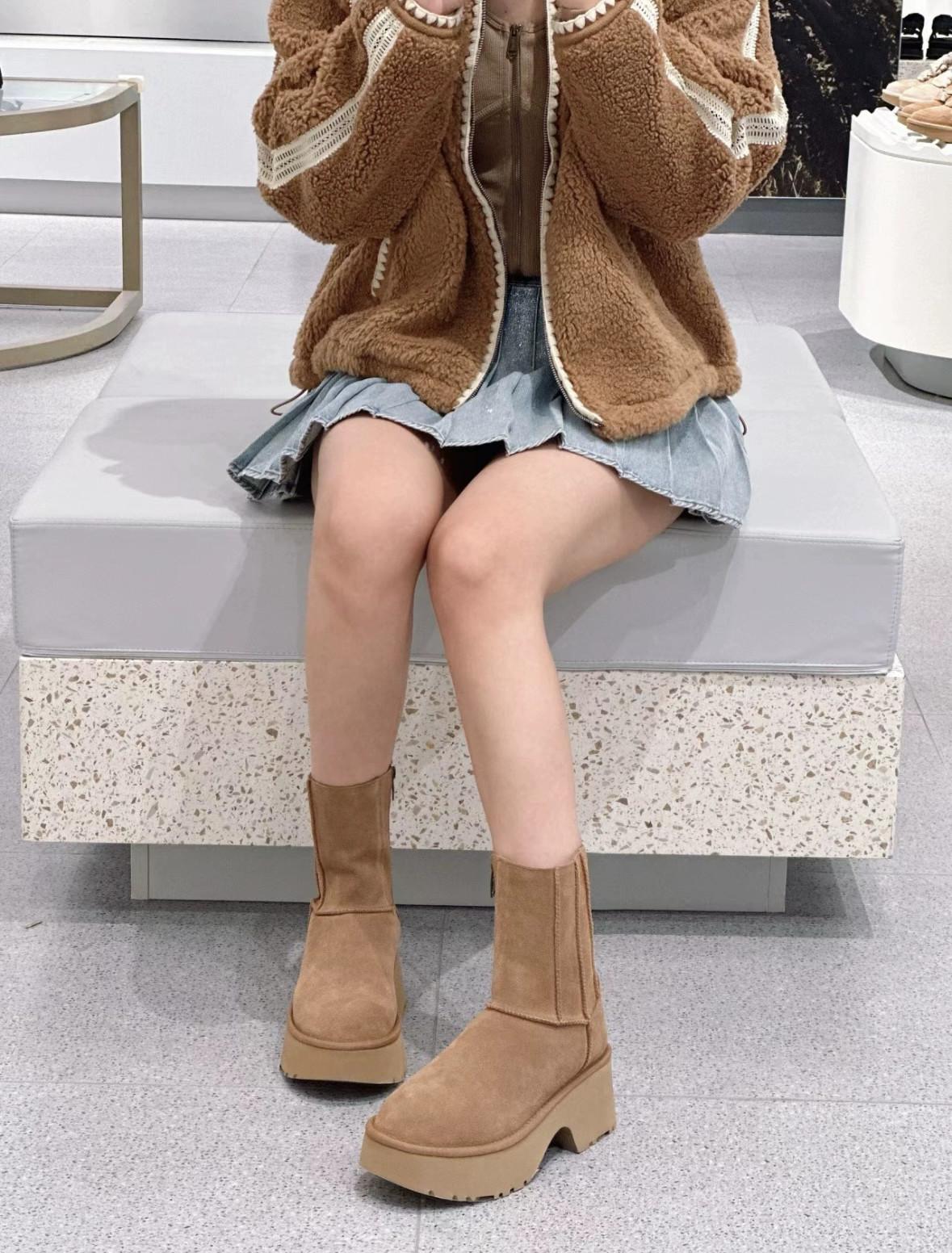 UGG 카운터 스트레이트 헤어 여성용 편안하고 세련된 웨지 힐 두꺼운 바닥 인어 펜슬 미드 튜브 스노우 부츠 1158313