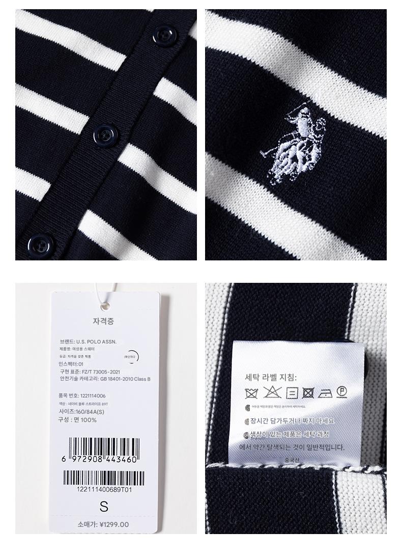 uspoloassn 미국 폴로 협회 봄 여성용 스트라이프 니트 카디건 캐주얼 라이트 니트 재킷