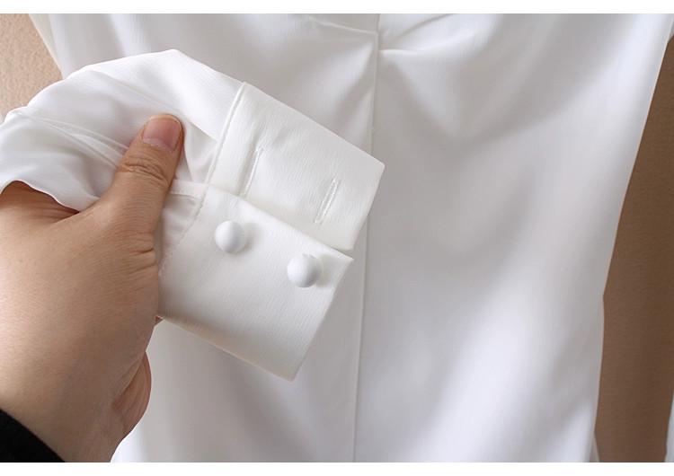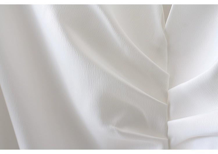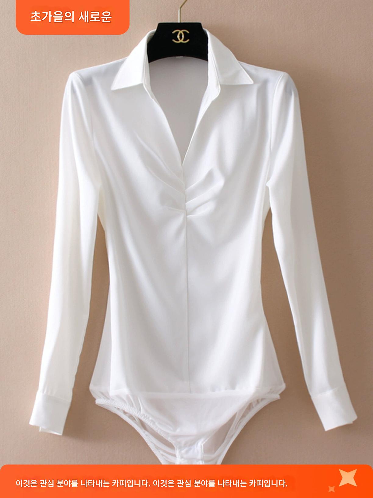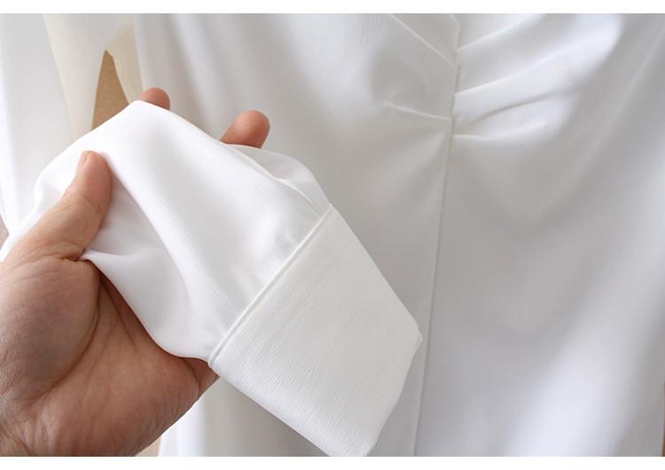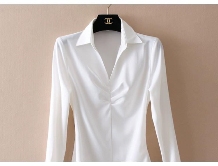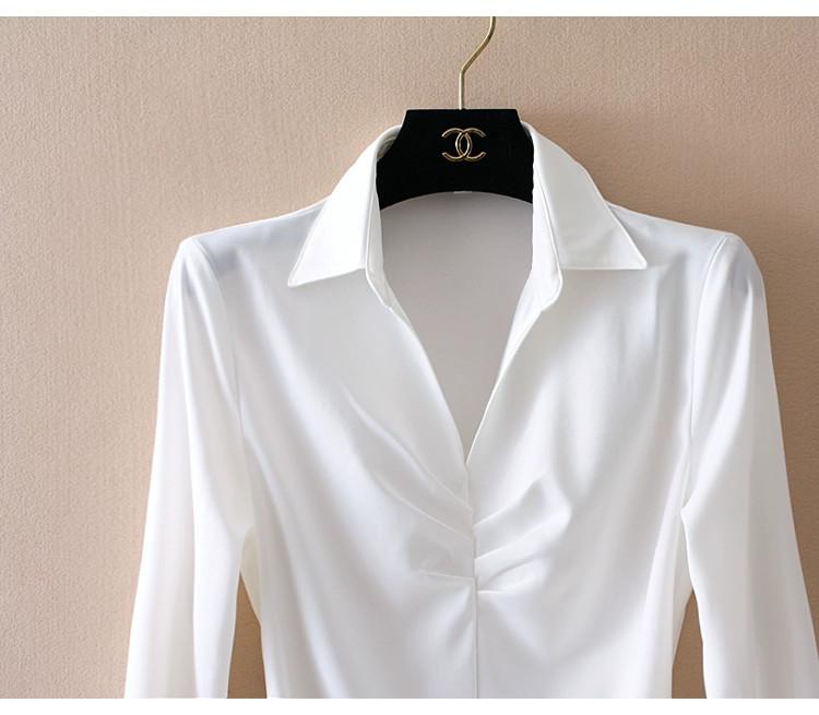 V넥 플리츠 새틴 쉬폰 셔츠 여성 광택 니치 바텀 원피스 셔츠 긴팔 흰색 기질 OL 새로운 스타일