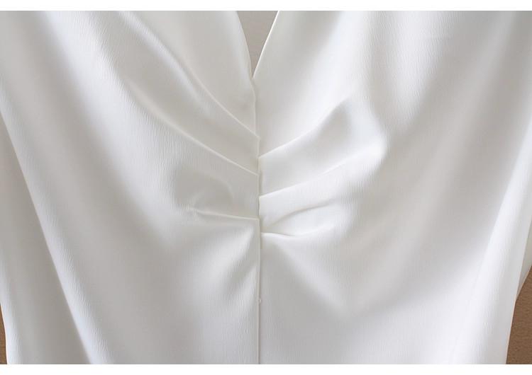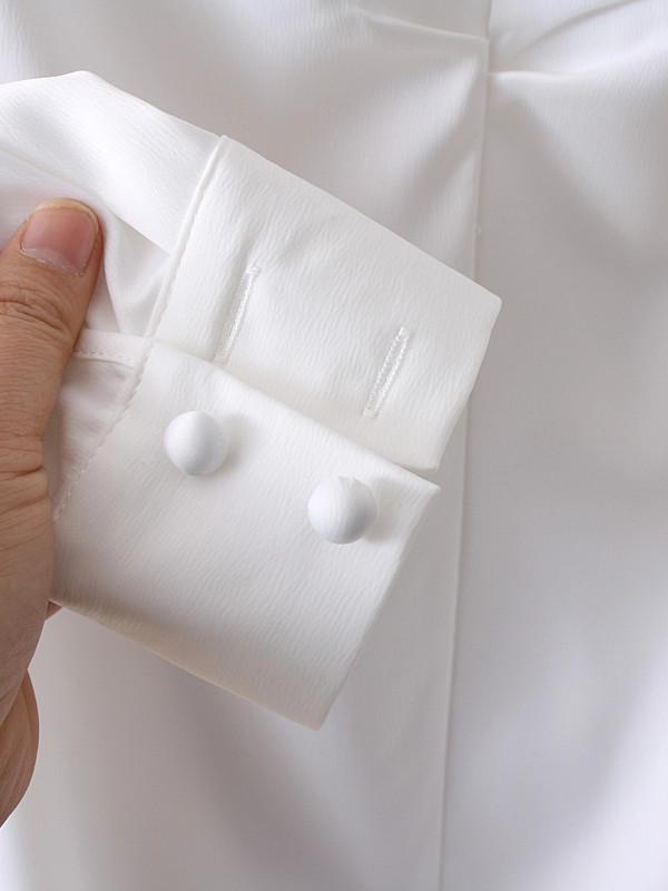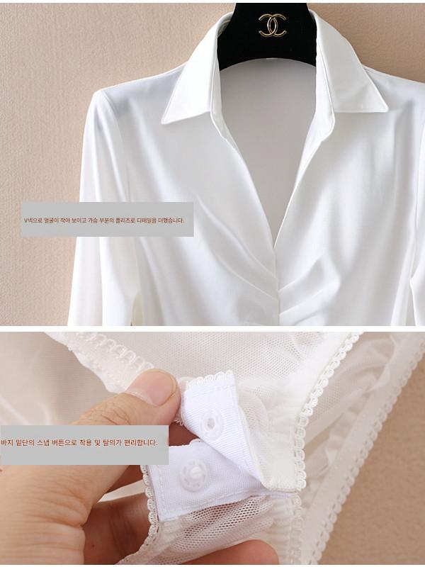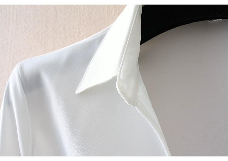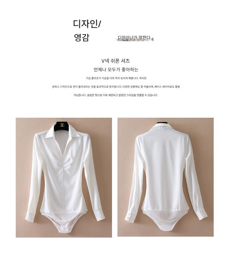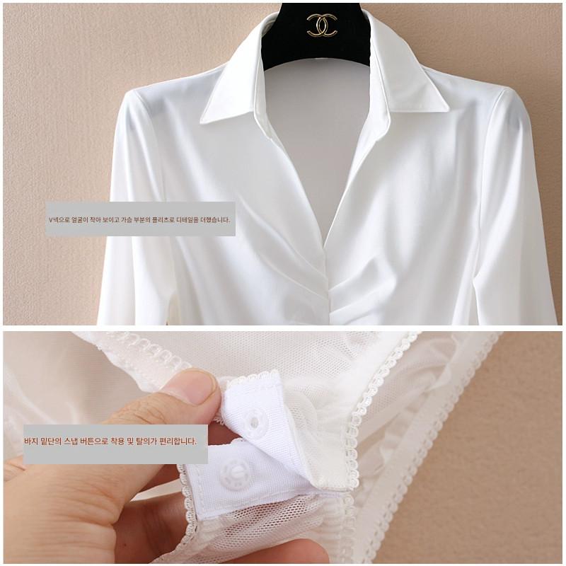 V넥 플리츠 새틴 쉬폰 셔츠 여성 광택 니치 바텀 원피스 셔츠 긴팔 흰색 기질 OL 새로운 스타일