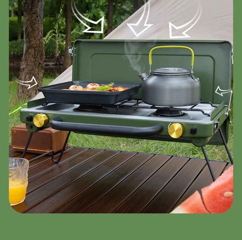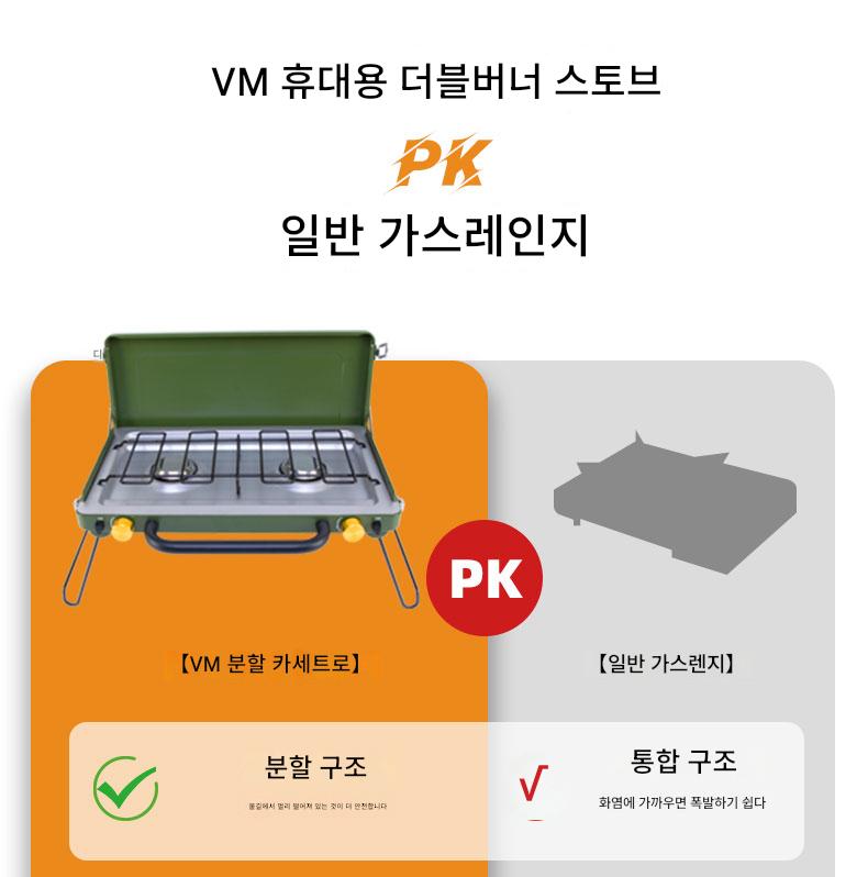 VOOMA 야외 휴대용 접이식 카드 더블 헤드 스토브 분할 가스 스토브 캠핑 피크닉 쿠커 강렬한 불 방풍