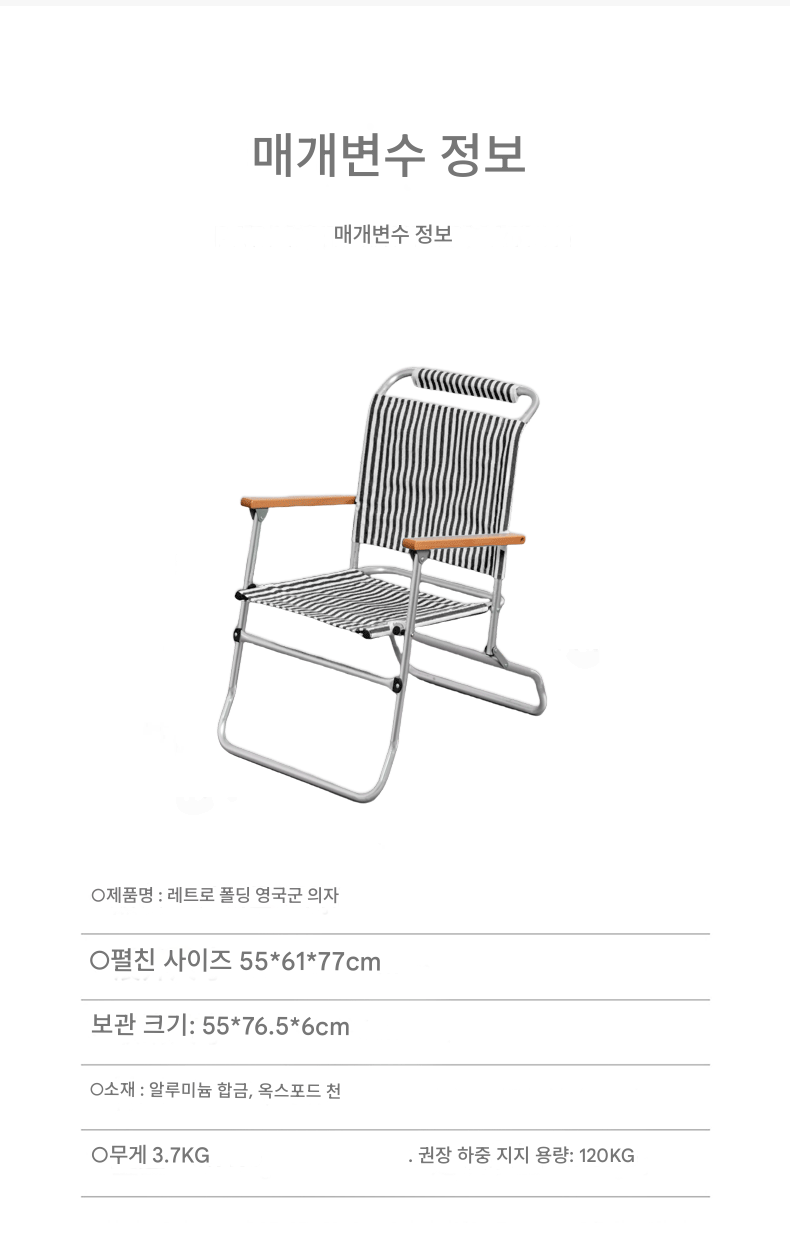 “walkhike 야외 휴대용 접이식 의자 캠핑 싱글 레저 알루미늄 합금 레트로 등받이 팔걸이 영국군 의자”의 첫 상품평을 남겨 주세요