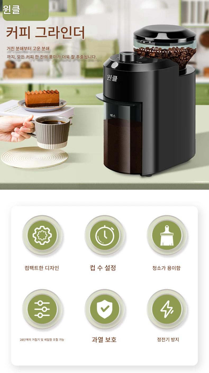 Wancle 커피콩 분쇄기 분쇄기 가정용 및 상업용 전자동 이탈리아 전기 분쇄기 다기능
