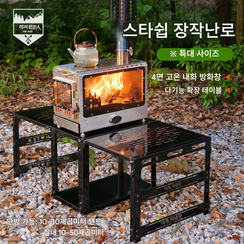 Wilderness Hunter 야외용 대형 나무 난로 확장형 테이블 오븐 펠릿 창고 안뜰 피크닉 스토브 캠핑 텐트 난방 스토브