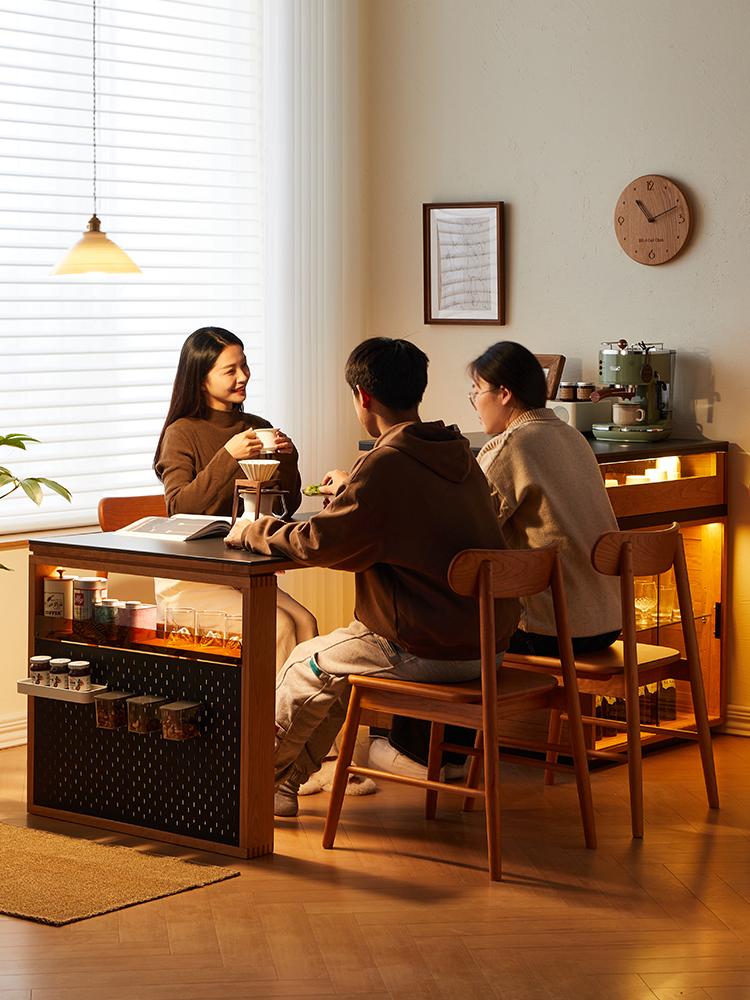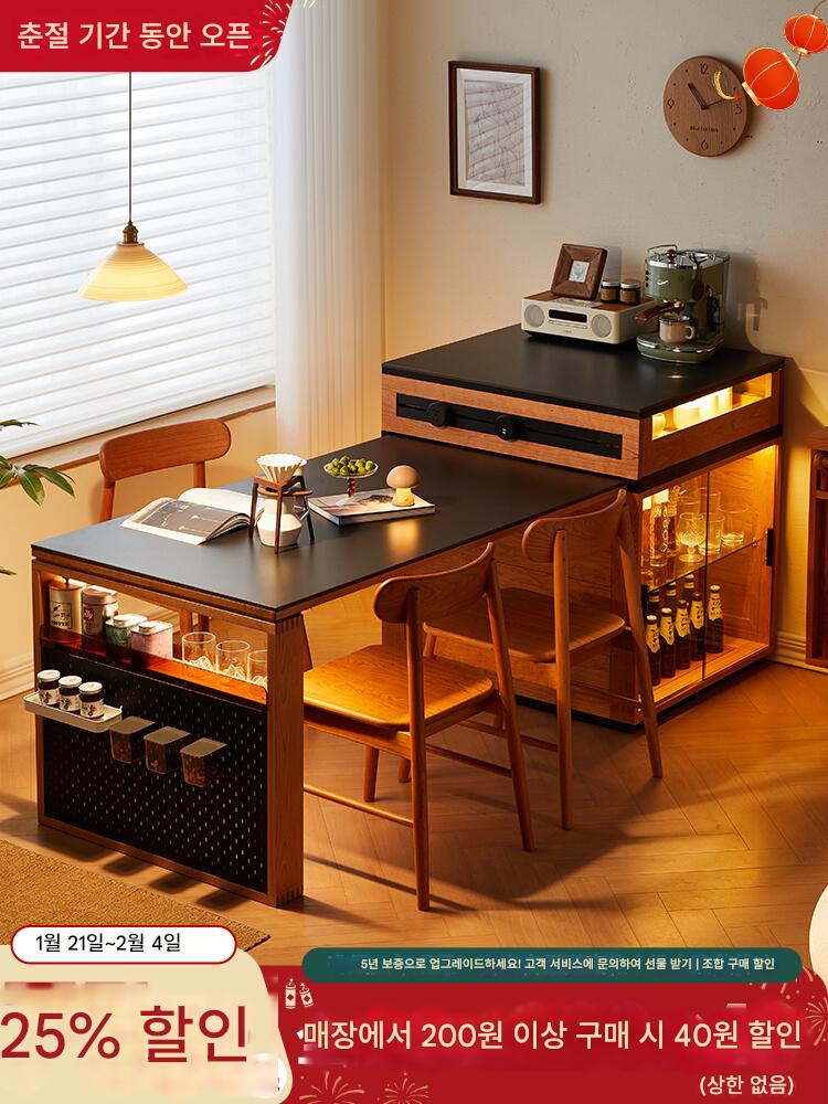 Xizhi 체리 나무 섬 식탁 통합 다기능 가정용 소형 아파트 단단한 나무 접이식 바 테이블 록 보드 식탁