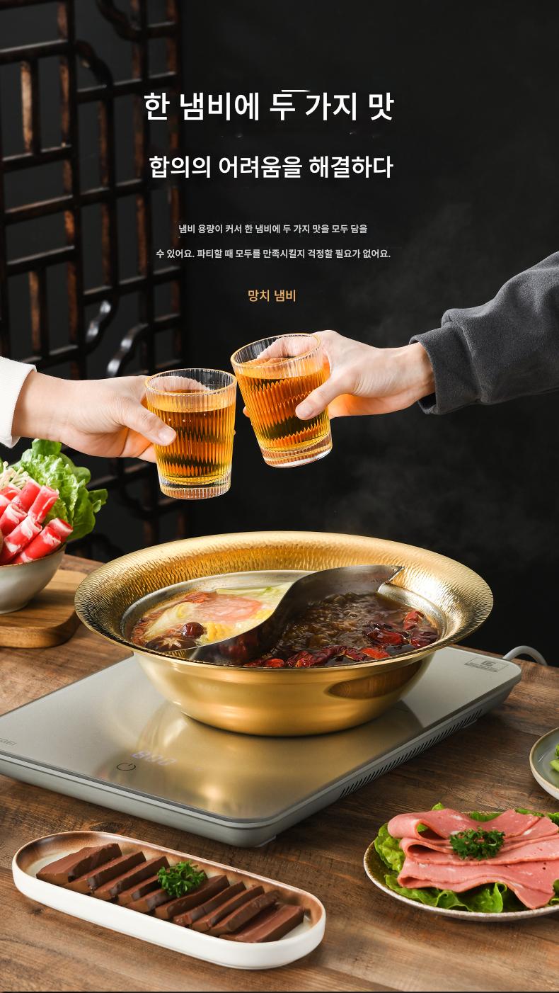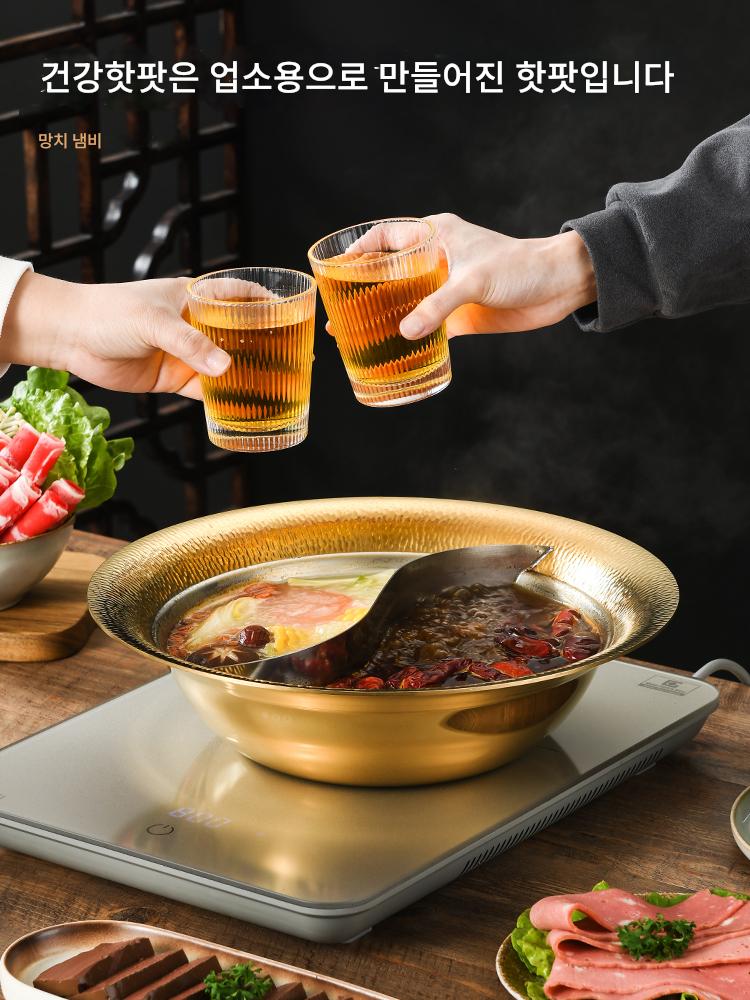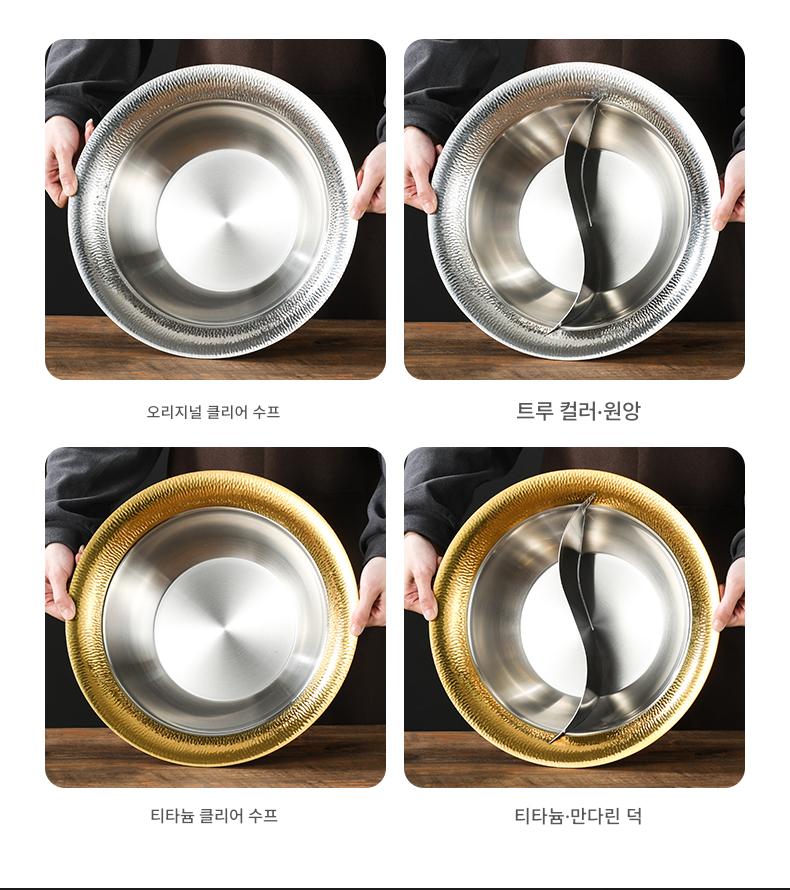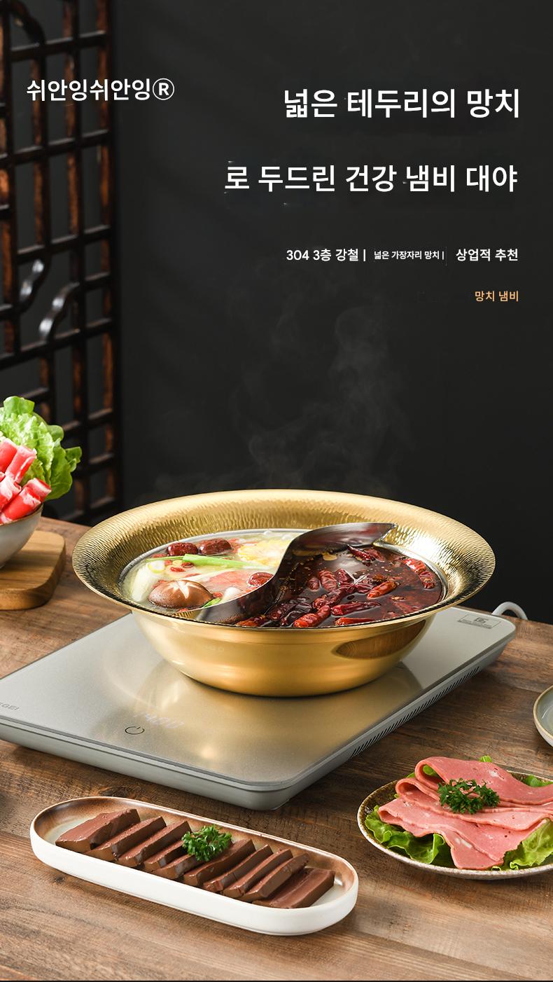 Xuanying 상업용 특대 두께 304 스테인리스 스틸 망치 패턴 만다린 오리 냄비 유도 조리기 가스 스토브 범용 투명 수프 샤부샤부