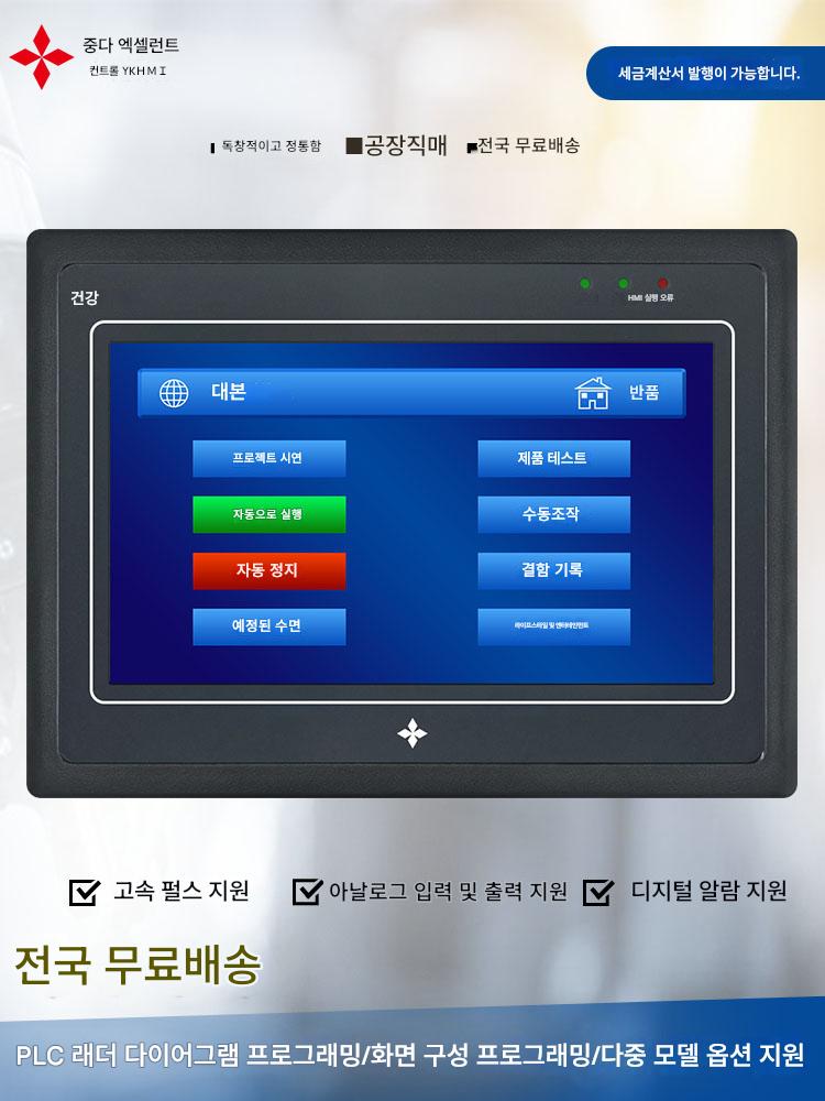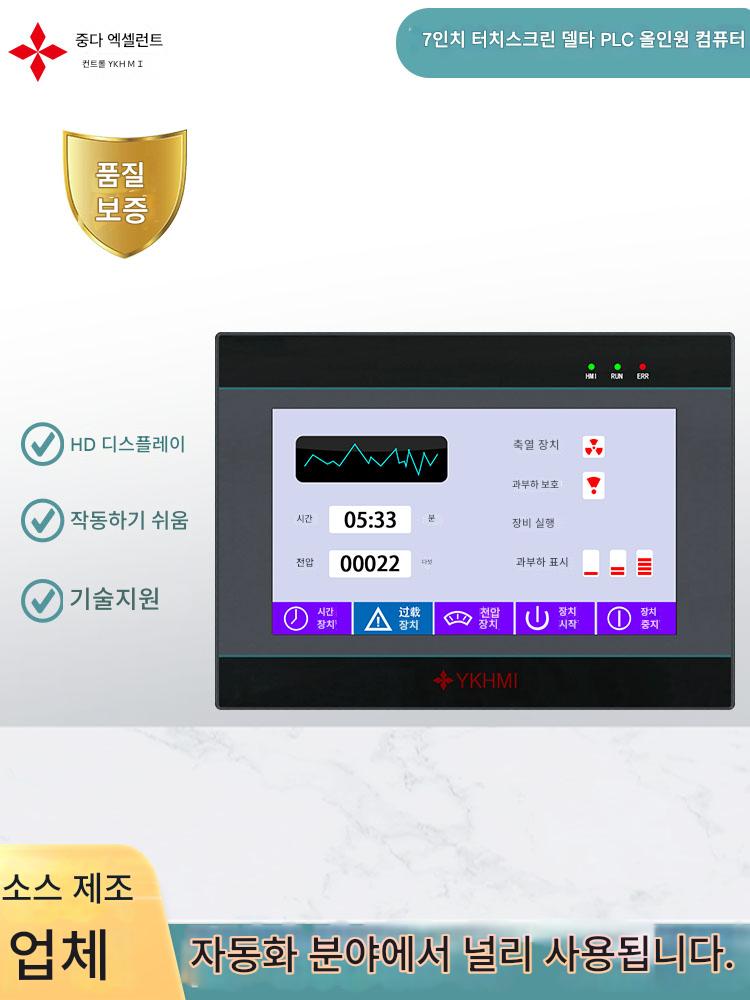 Youkong 7인치 터치스크린 PLC 일체형 기계는 Delta ES2 명령어, 고속 펄스 아날로그 온도 입력과 완벽하게 호환됩니다.