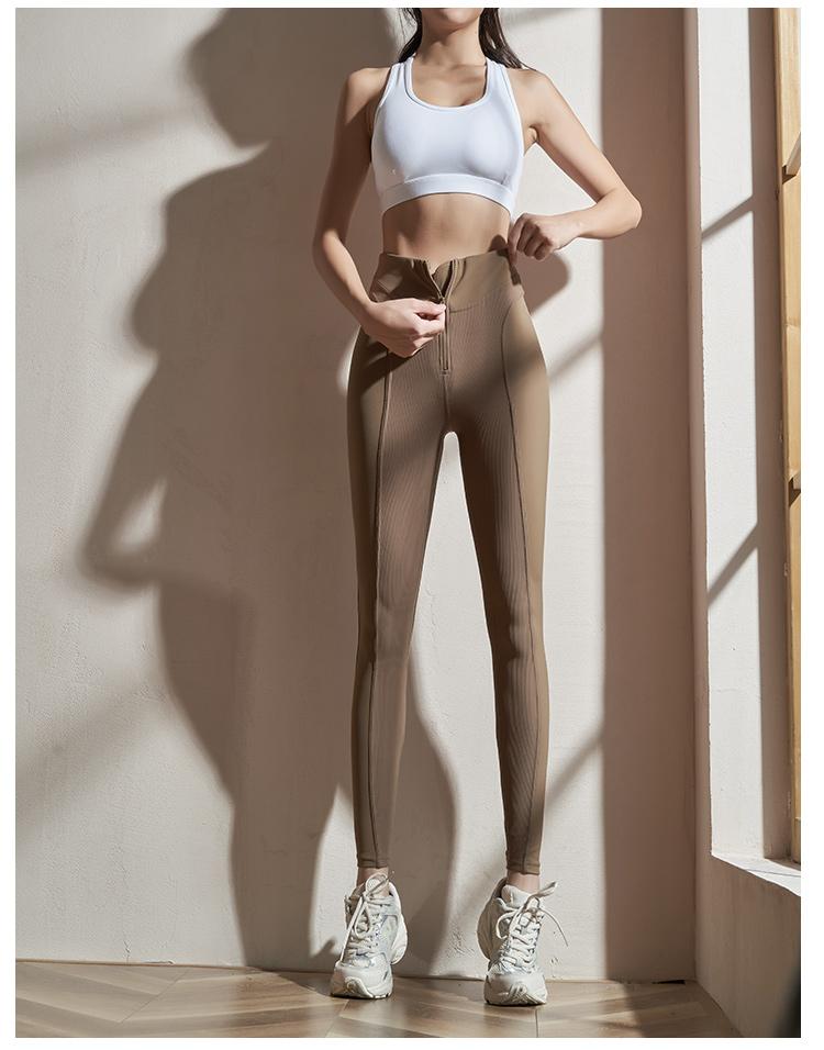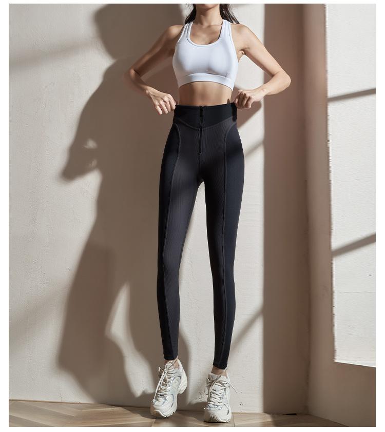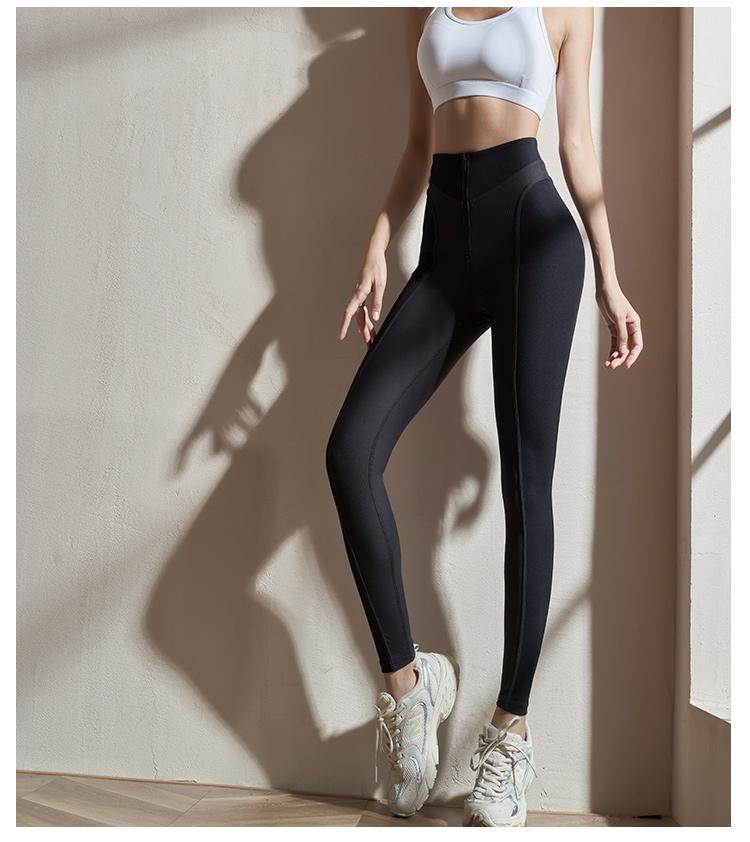 Youyoumeat 지퍼 복부 조절 요가 팬츠 복숭아 엉덩이 리프팅 피트니스 팬츠 타이트 스포츠 러닝 팬츠 속건 트레이닝 수트