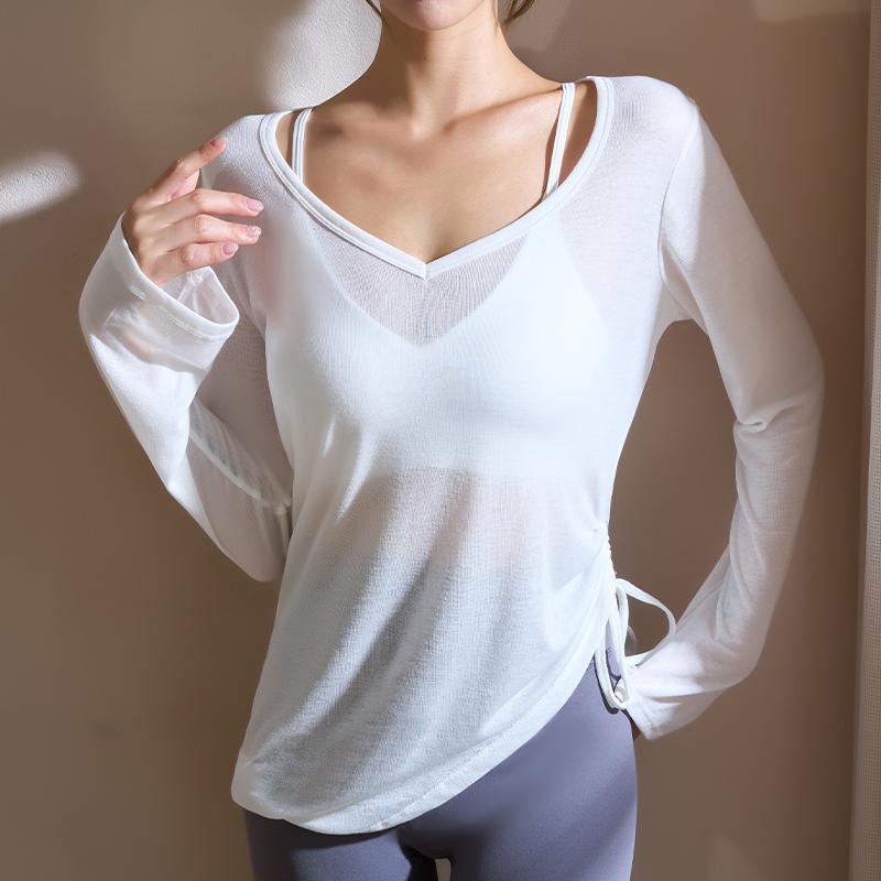 Youyoumeat 플리츠 드로스트링이 달린 긴팔 엉덩이 커버 요가 수트 블라우스, 느슨한 캐주얼 피트니스 스포츠 티셔츠, 러닝복