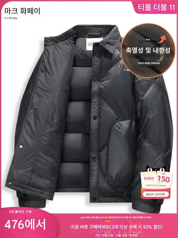 [화산암] 마크 페어웨일 방풍 라펠 다운 재킷 남성 의류 2025 겨울 신상 트렌디 웜 코트