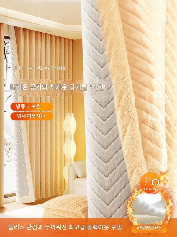 겨울용 방풍 커튼은 바람을 차단하고, 추위를 막고, 방음하는 두꺼운 면으로 두껍게 만들어졌습니다. 침실에 적합하며 빛을 차단하고 따뜻하게 유지합니다.