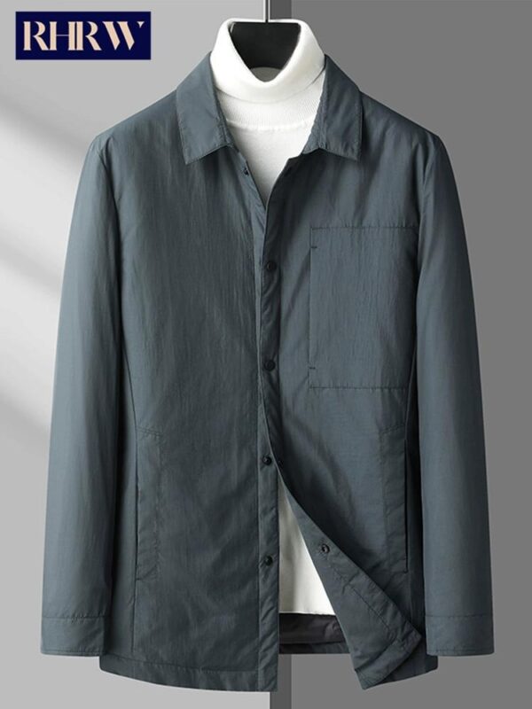 RHRW 남성용 경량 셔츠 스타일 다운 재킷, 2025년 겨울 신상품, 라펠, 캐주얼 비즈니스 스타일, 따뜻하고 주름 없는 아우터웨어