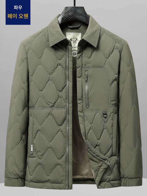 남성 2025년 겨울 신상 캐주얼 경량 화이트 덕다운 따뜻한 코트 (셔츠 스타일 칼라)